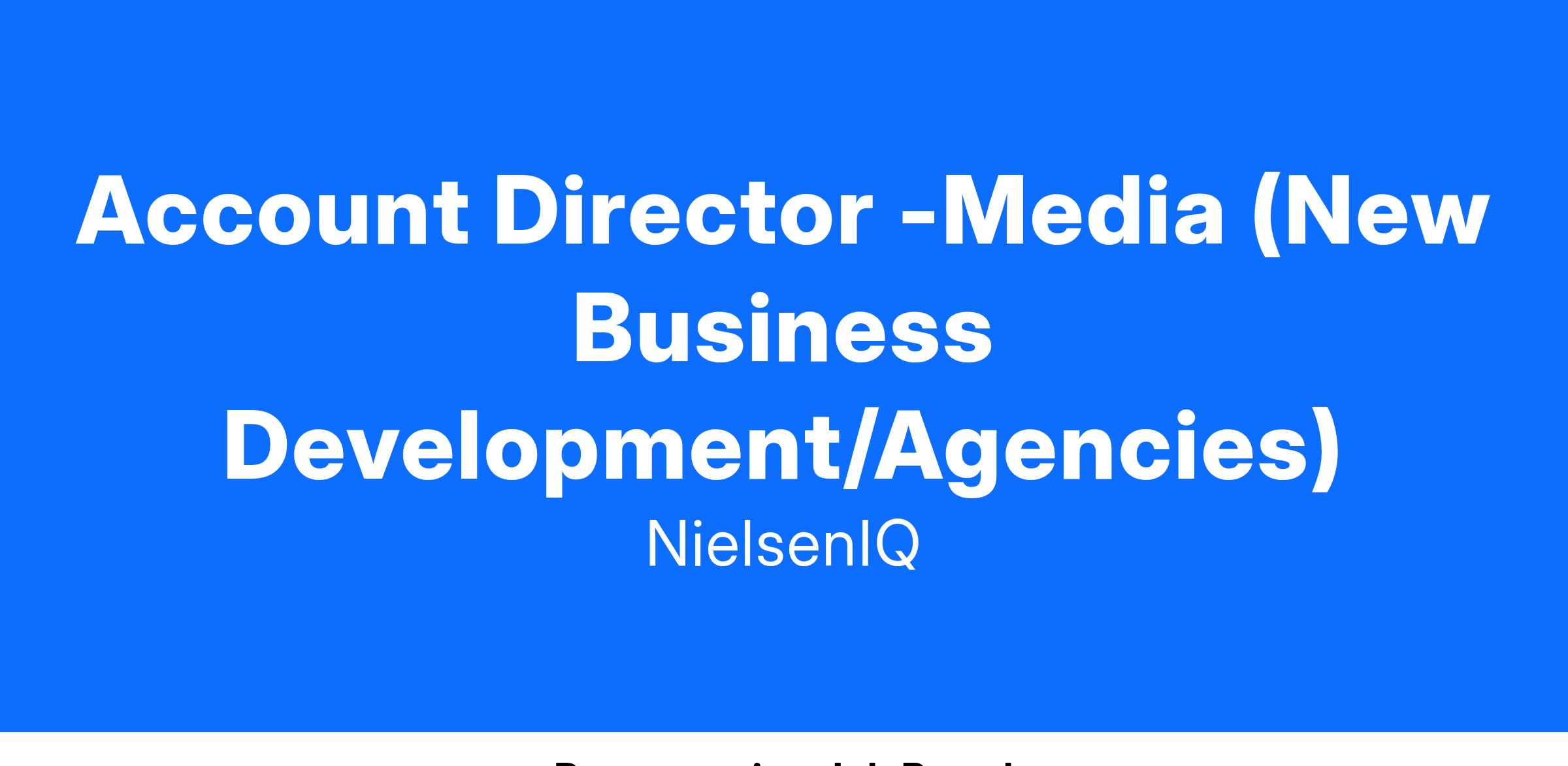 This is an exciting opportunity to play a key role in expanding NielsenIQ’s (NIQ) footprint within the media agency space. Your primary responsibility will be to engage with media agencies, developing and executing a strategic sales plan to increase revenue through NIQ audience data, planning and measurement solutions. Leveraging your industry expertise, you will drive long-term client relationships, optimize client investments, and help agencies utilize NIQ’s data to improve audience targeting, planning and campaign measurement. We’re looking for someone with digital and data sales experience. The ideal candidate will be determined, self-motivated, and willing to go the extra mile while hunting for new business. We are looking for an out-of-the box thinker who can capitalize on new opportunities and thrive in a strong team-based environment.