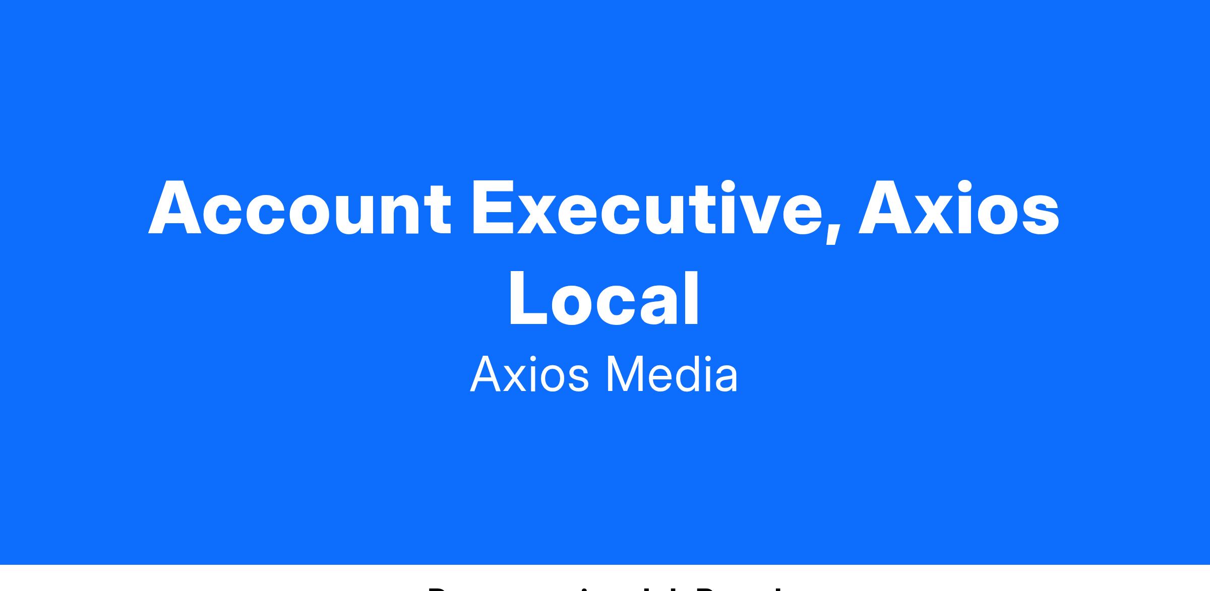 Why it matters: The Account Executive will work with new and existing partners to grow Axios Locals’ revenue through a variety of products ranging from native content, email marketing and events. You will act as a brand ambassador for certain Axios Local markets and proactively network across those markets and create new opportunities. You will develop and maintain trusted, strategic relationships with local agencies and client partners.