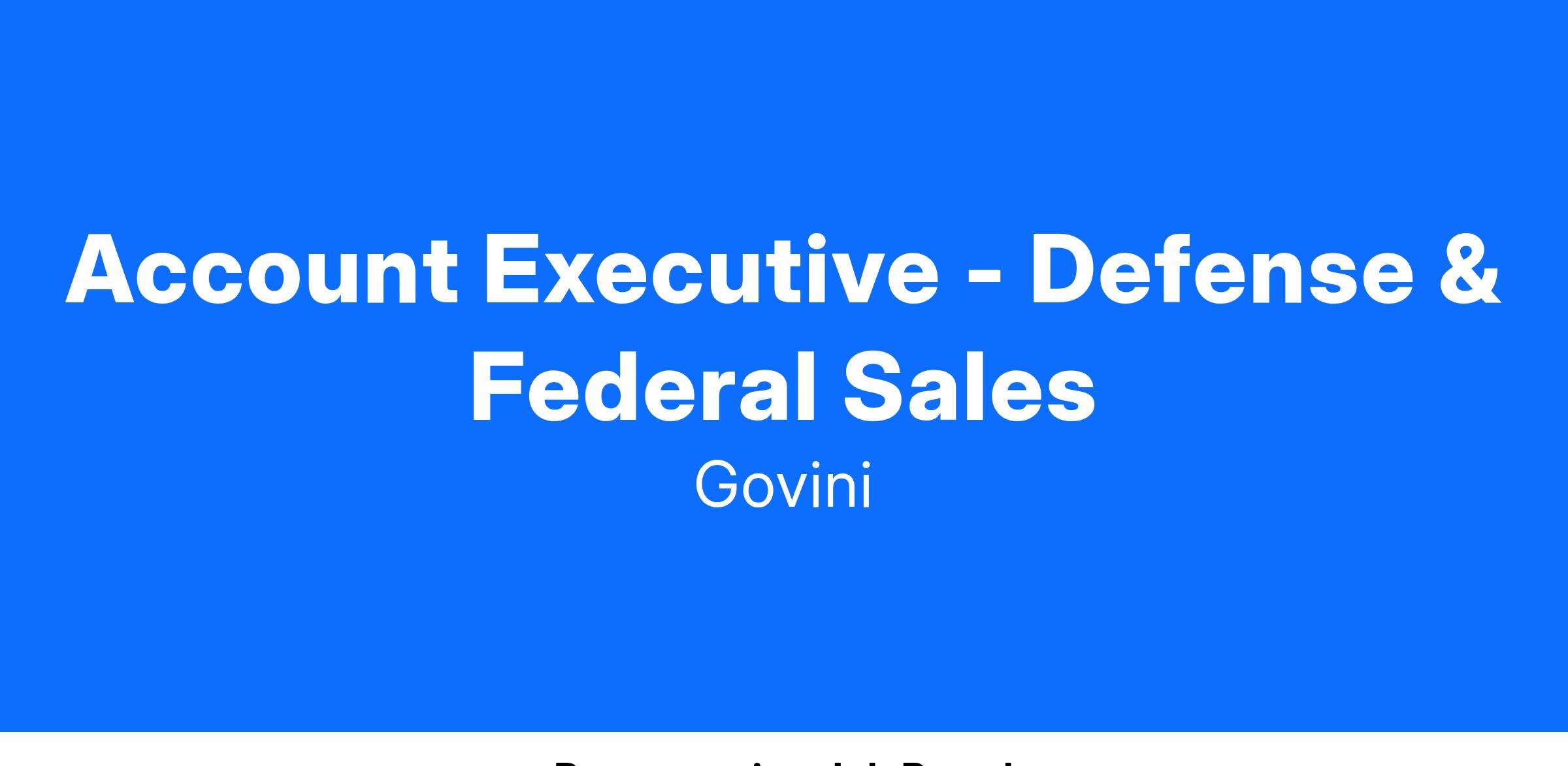 We are seeking a Sales Account Executive to join the growing Sales team at Govini. The Account Executive is a critical role in supporting Goviniβs business by engaging with customers in pursuit of positioning our technology, expanding the sales pipeline, and driving revenue.