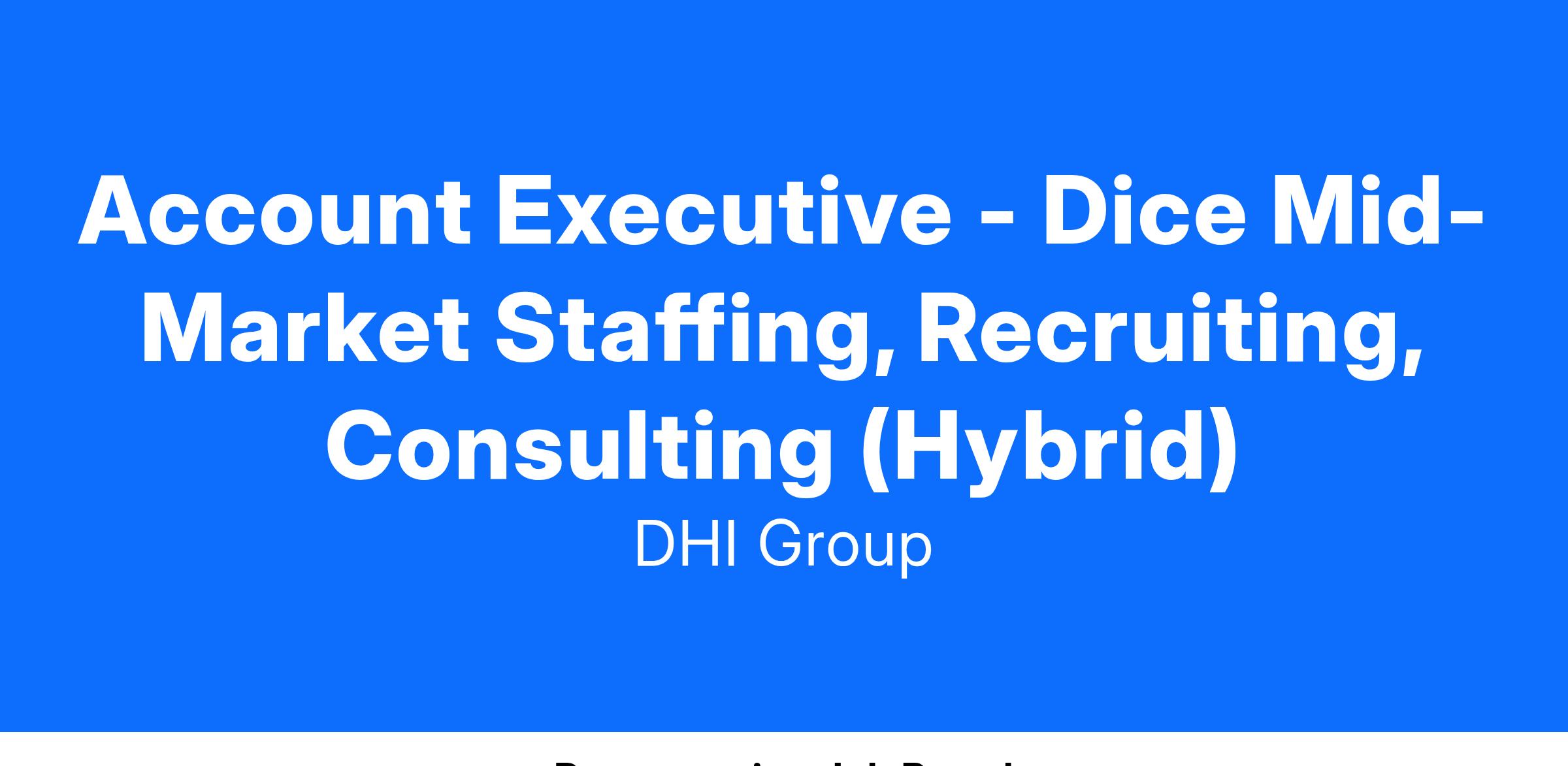 This role directly impacts revenue for yourself, the team, and for DHI. The goal is for you to be part of double-digit revenue growth for our next fiscal year and beyond. You will help Dice drive new clients and provide benefits to the Tech candidate community by offering new roles that may only be available in the Dice marketplace.