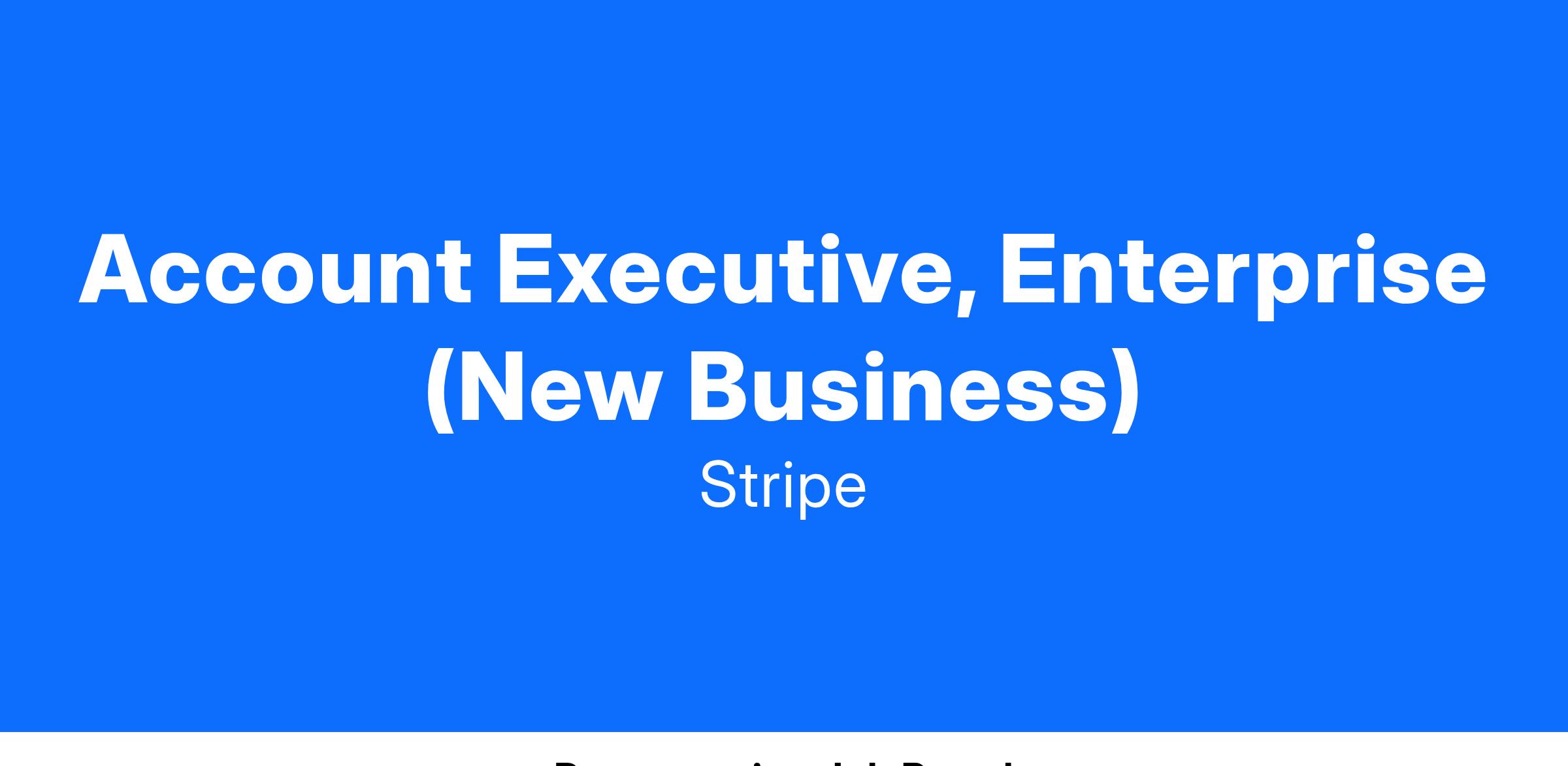 As an Account Executive, Enterprise at Stripe, you will drive Stripe’s future growth engine by building new relationships with prospective companies, turning them into happy Stripe users.