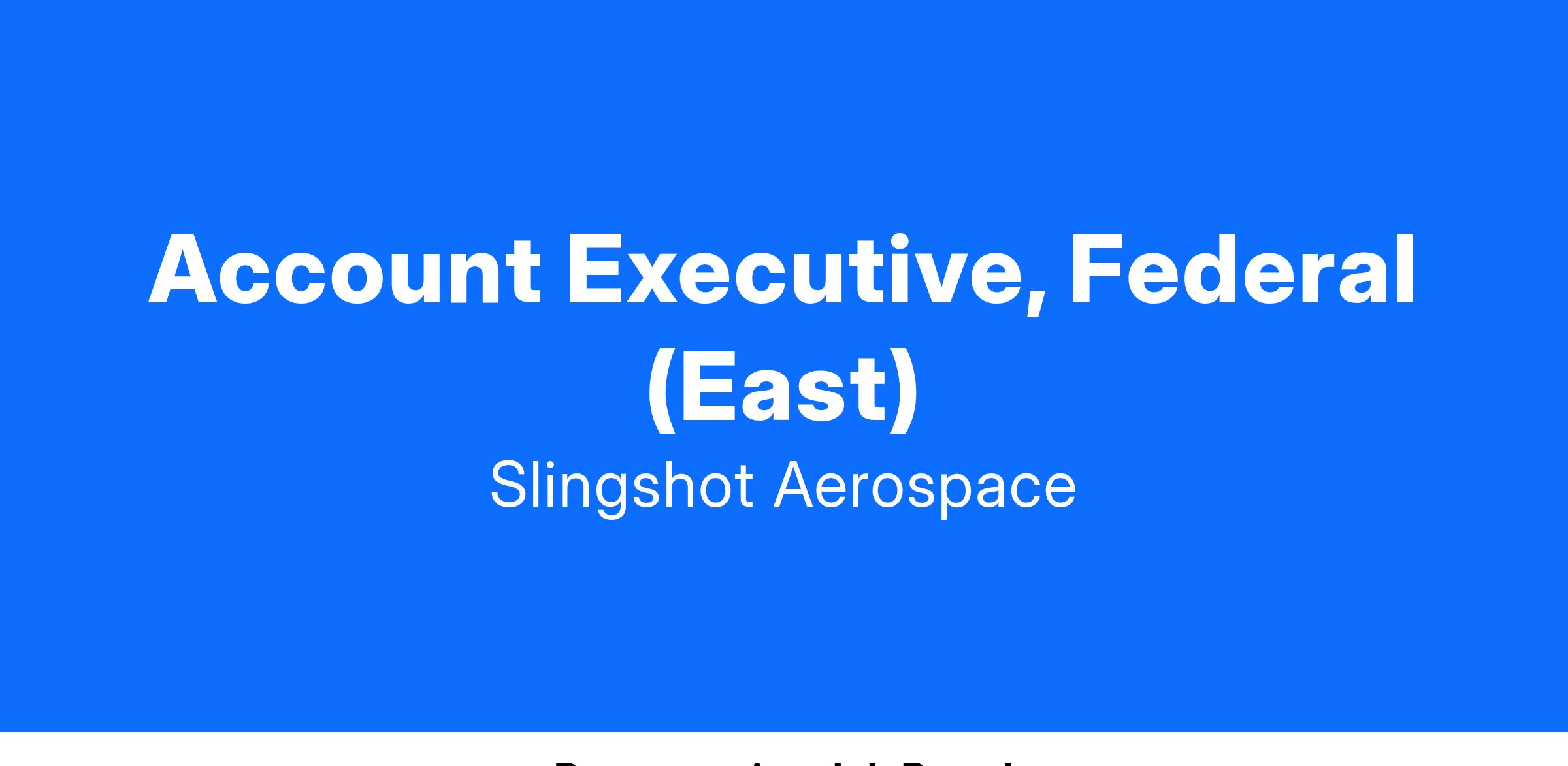 Slingshot Aerospace is seeking an Account Executive to interface with Federal Clients with operations and interests in space. This role leads the identification, qualification, and pursuit of new and expansion business opportunities with lead account ownership and relationship requirements.