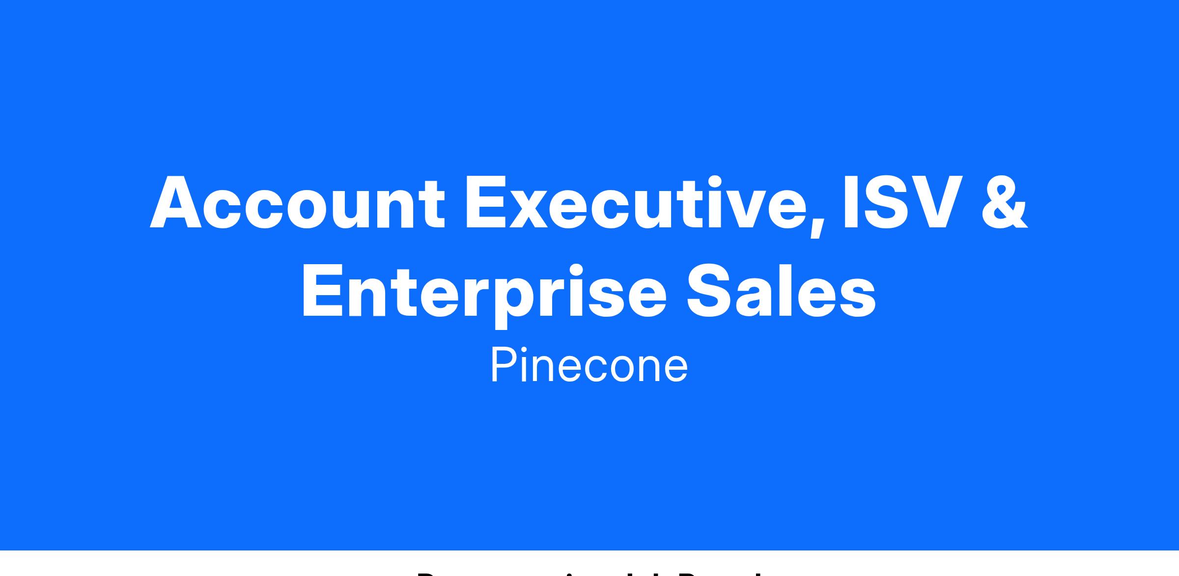 We are hiring an experienced Account Executive to support our growth into the ISV and Enterprise customers! Reporting directly into the VP of Global Sales, this person will play a critical role in the growth of Pinecone as we expand the power of Vector Databases, semantic search, and advanced data infrastructure for AI use cases into leading ISV and Enterprises in North America.