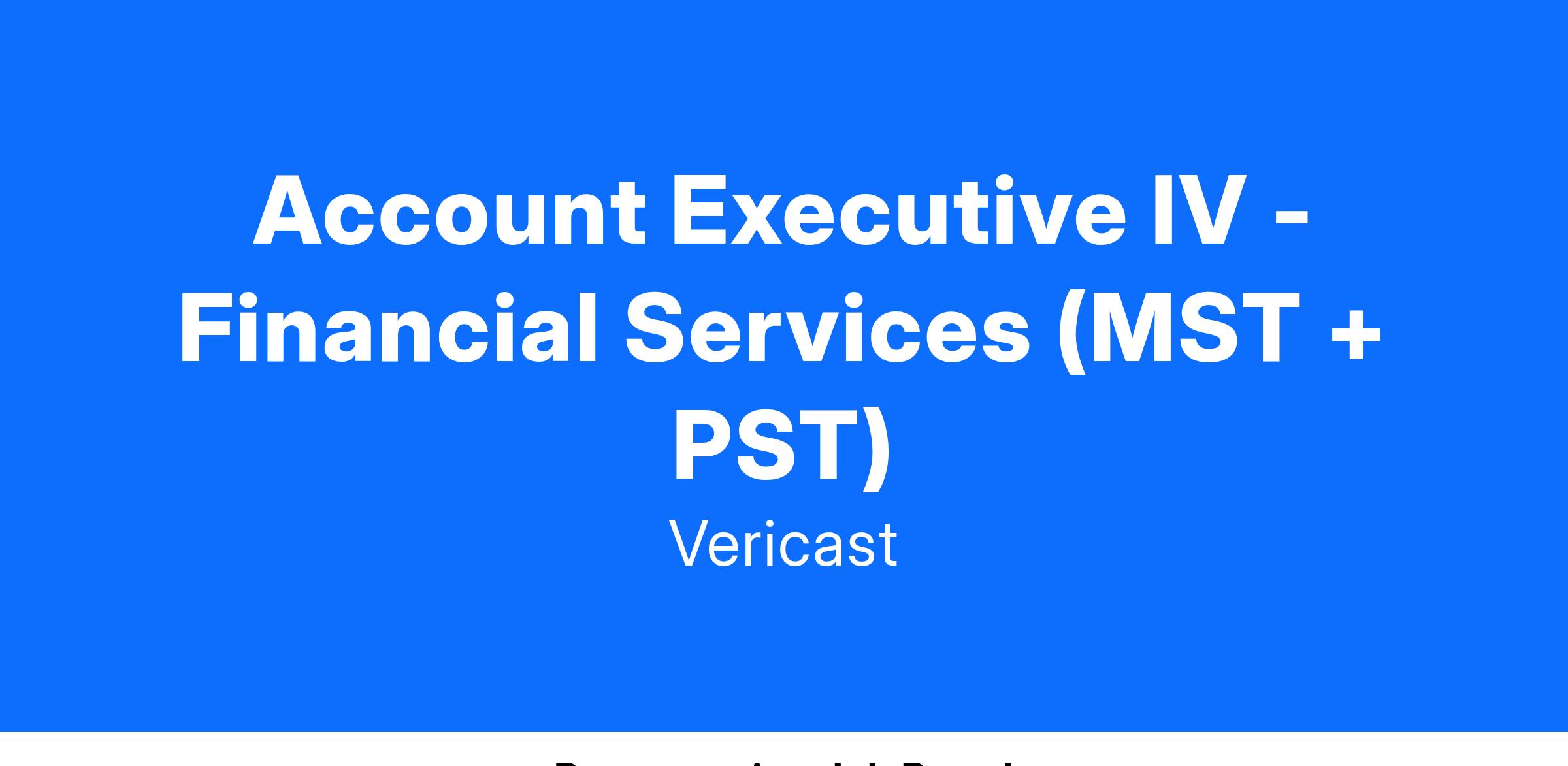 Account Executive IV - Financial Services (MST + PST)