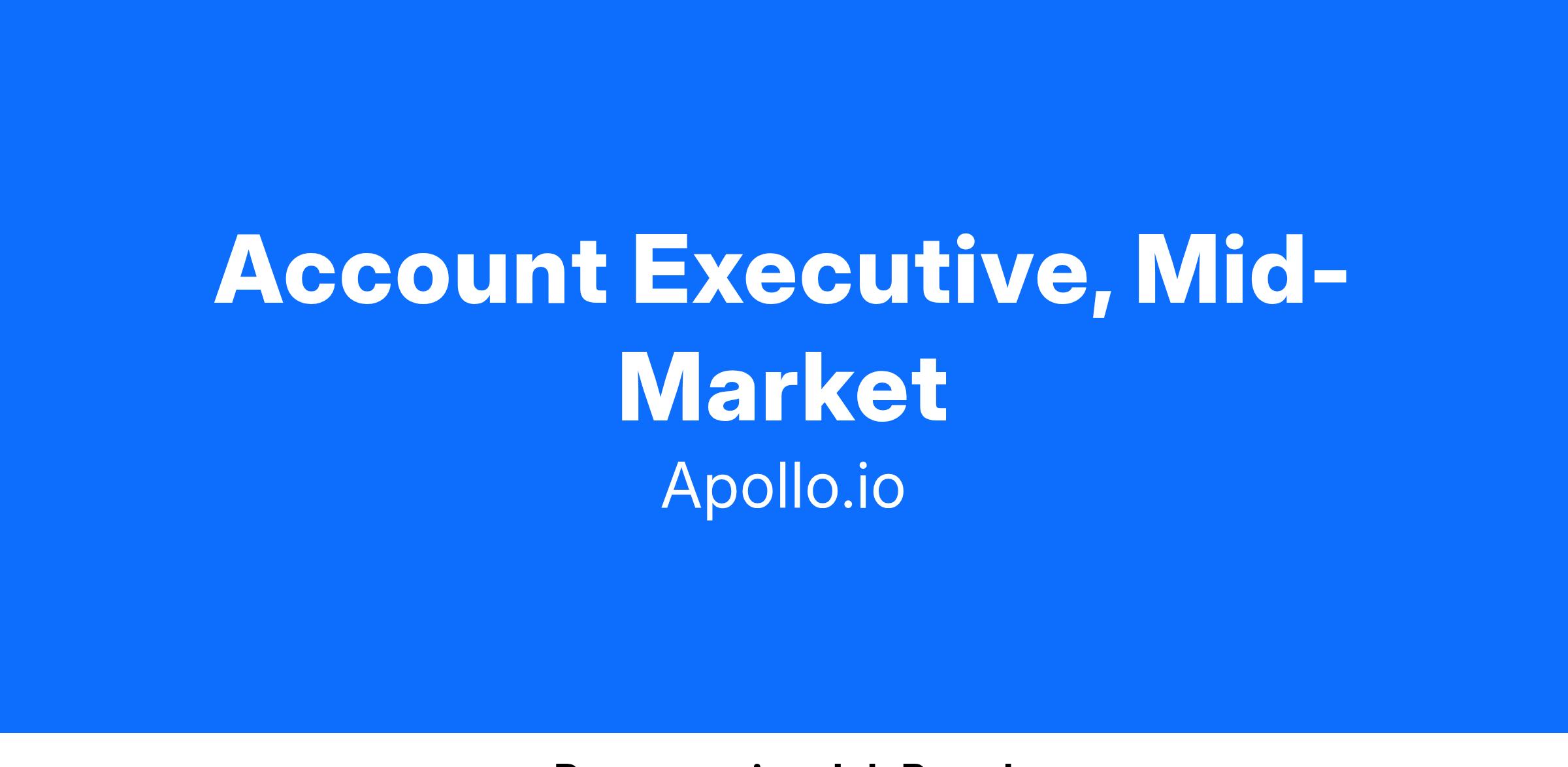 Apollo.io is seeking an enthusiastic Account Executive to drive net new customer acquisitions for our Mid-Market team. As a mid-market hire, you'll play a pivotal role in continuing to grow our mid-market segment and find strategies to tap into the enterprise segment as well, leveraging both farming and outbound strategies to drive growth. If you're passionate about sales, eager to make a tangible impact, and thrive in dynamic environments, this opportunity is tailor-made for you.