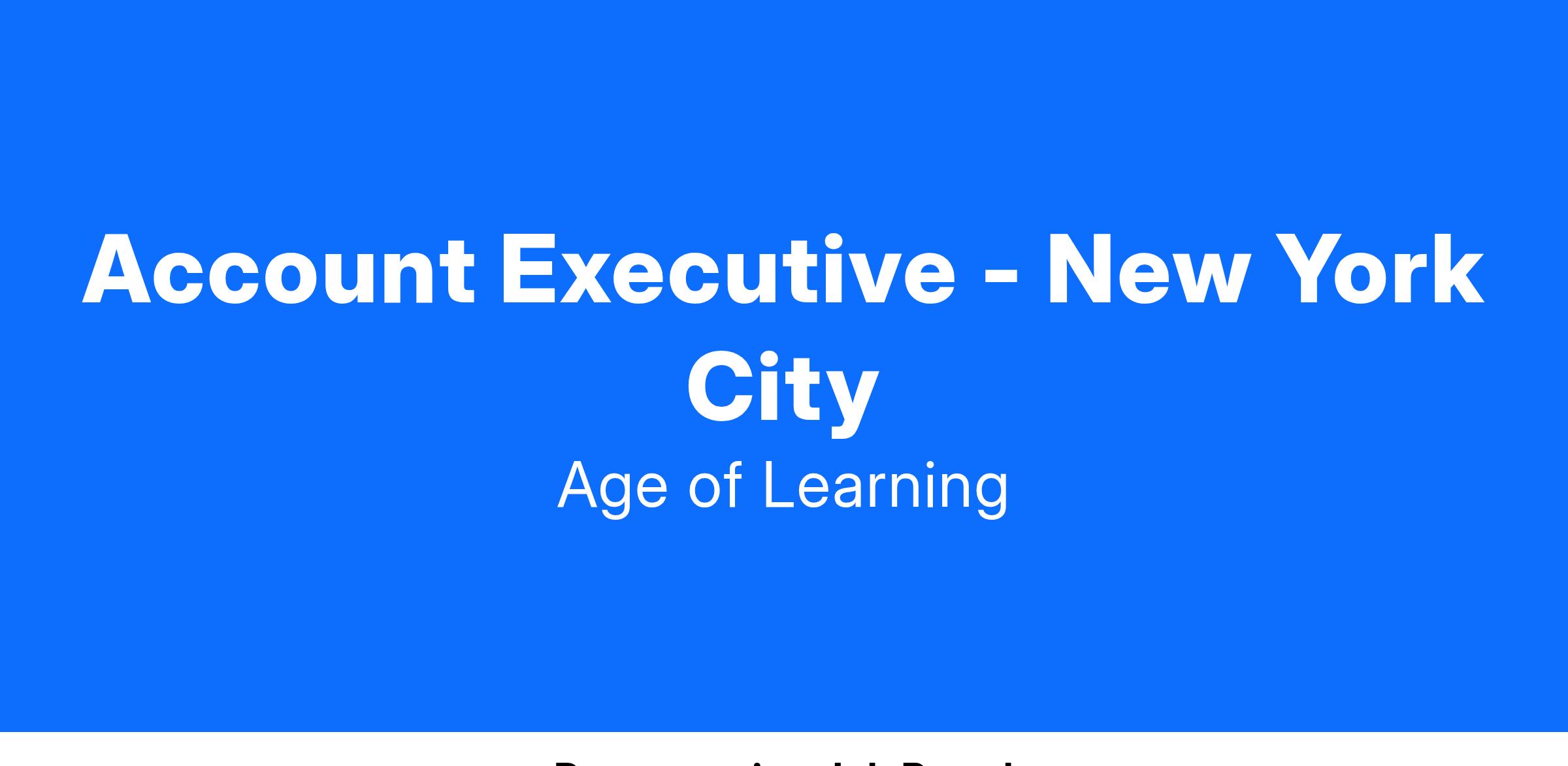 Age of Learning is seeking to hire an Account Executive in New York City for our Schools Division, who will report to our Director, Regional Sales. In this role, you will work collaboratively with our other Sales leaders on building out our world-class schools' business. This individual will assist in developing and executing go-to-market strategies aligned with our growth goals and will be directly engaged in field sales efforts.
