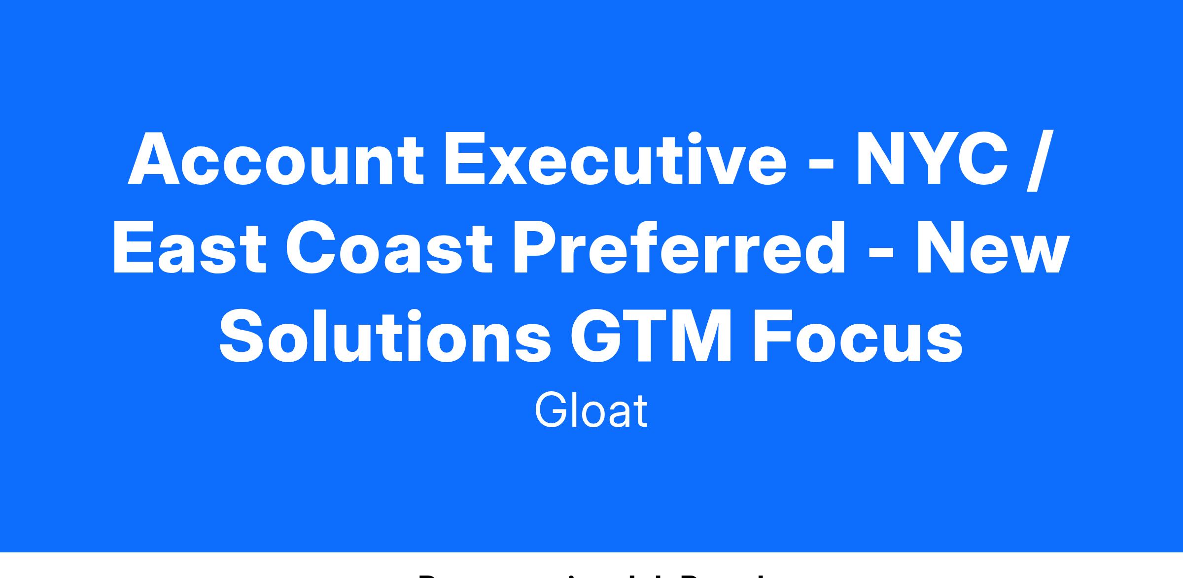 Account Executive - NYC / East Coast Preferred - New Solutions GTM Focus