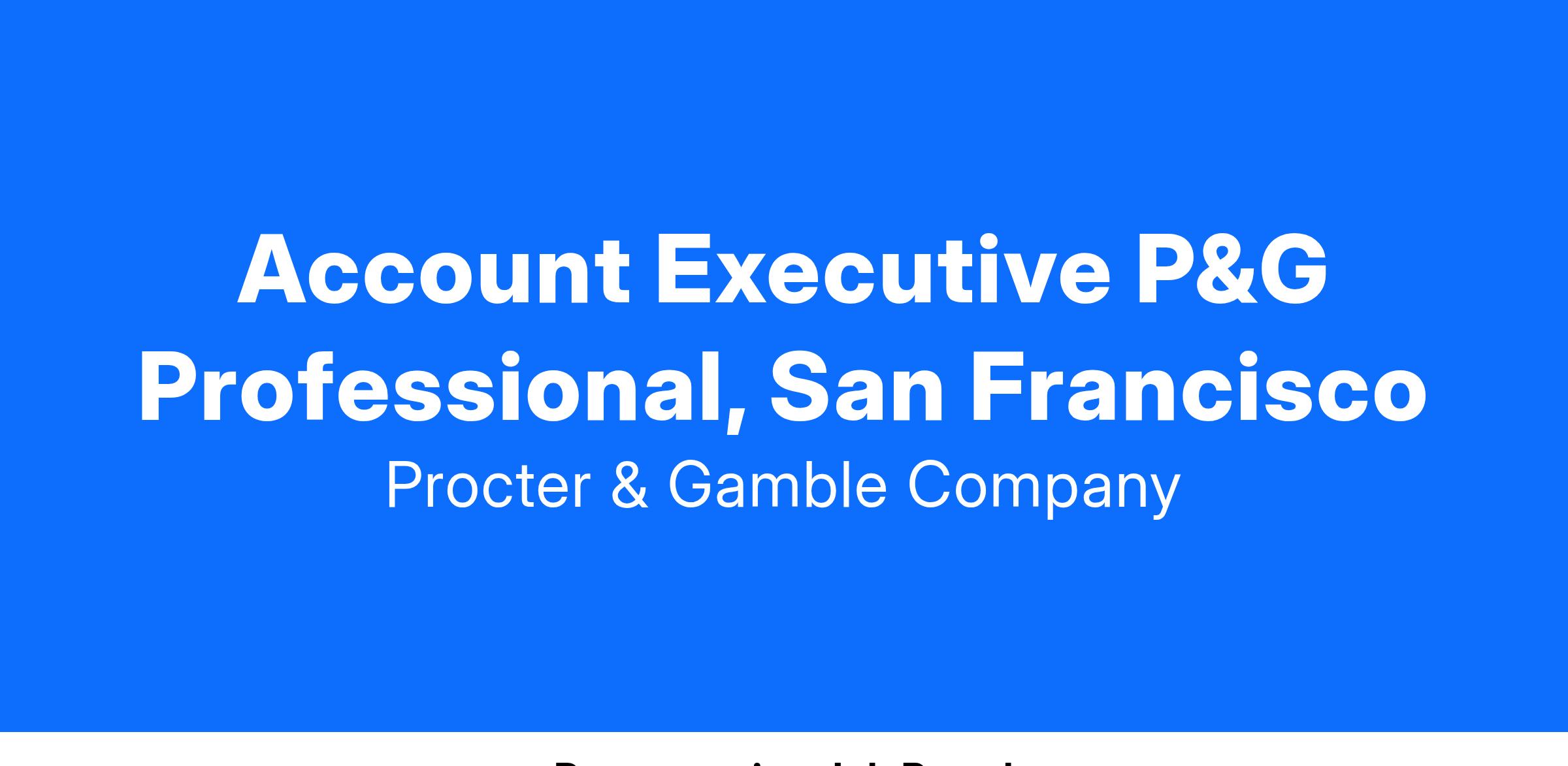 P&G Professional is a leading manufacturer and marketer of away from home products. P&G Professional Account Executives manage our business with Jan/San and Foodservice distributors, hospitality, healthcare, restaurants and other independent businesses. They develop business building ideas and sell these ideas to our accounts, as well as manage their implementation. They market products which will enable customers to meet their consumers' needs. P&G Professional Account Executives are part of a multi-functional Customer Team which includes experts in Finance, Logistics, Marketing, and Information Systems to provide the resources needed to develop a new and successful way of doing business.