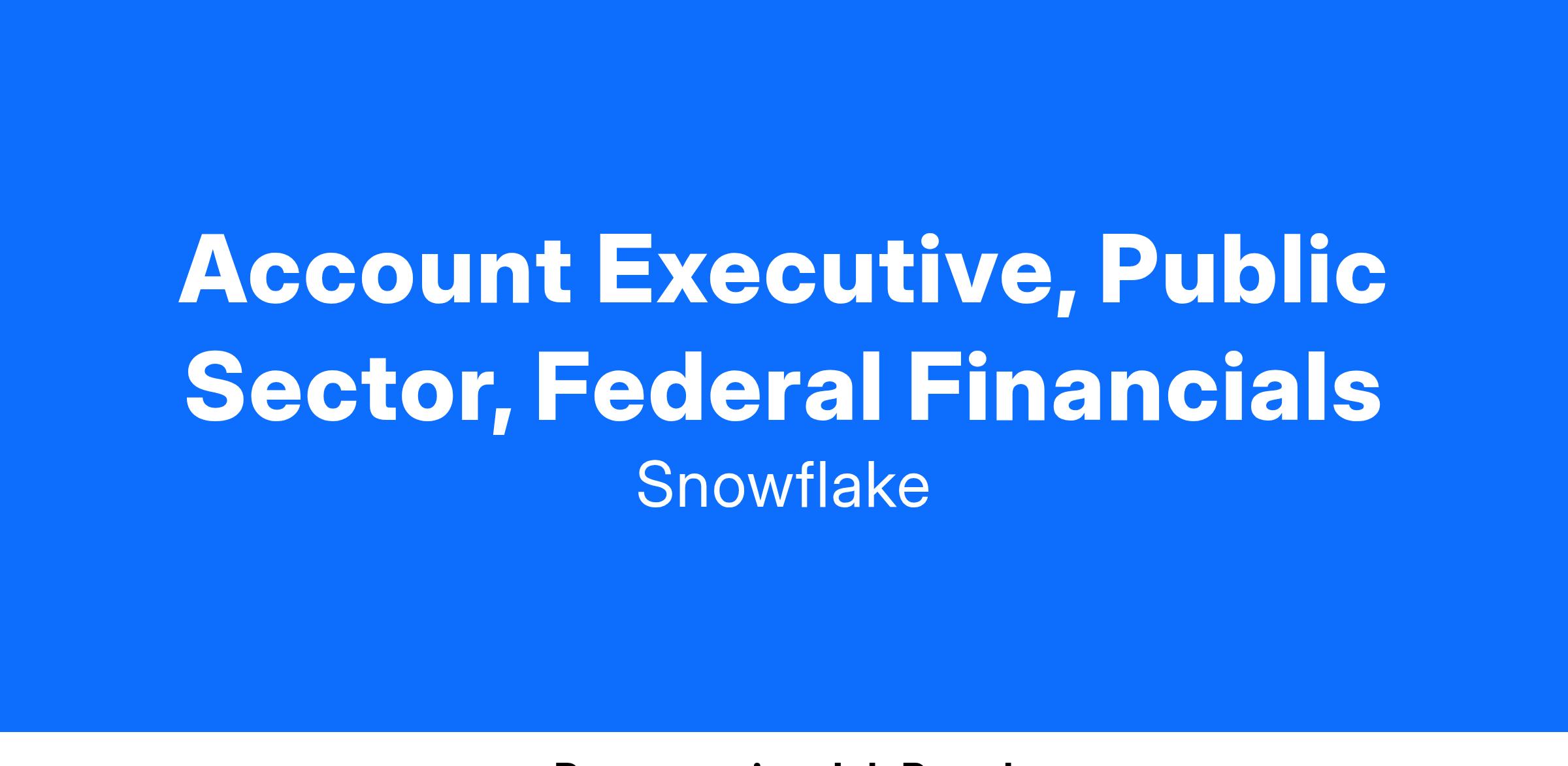 The Snowflake Public Sector team is expanding, and we're seeking a results-driven Account Executive with deep expertise in the Federal Civilian market.