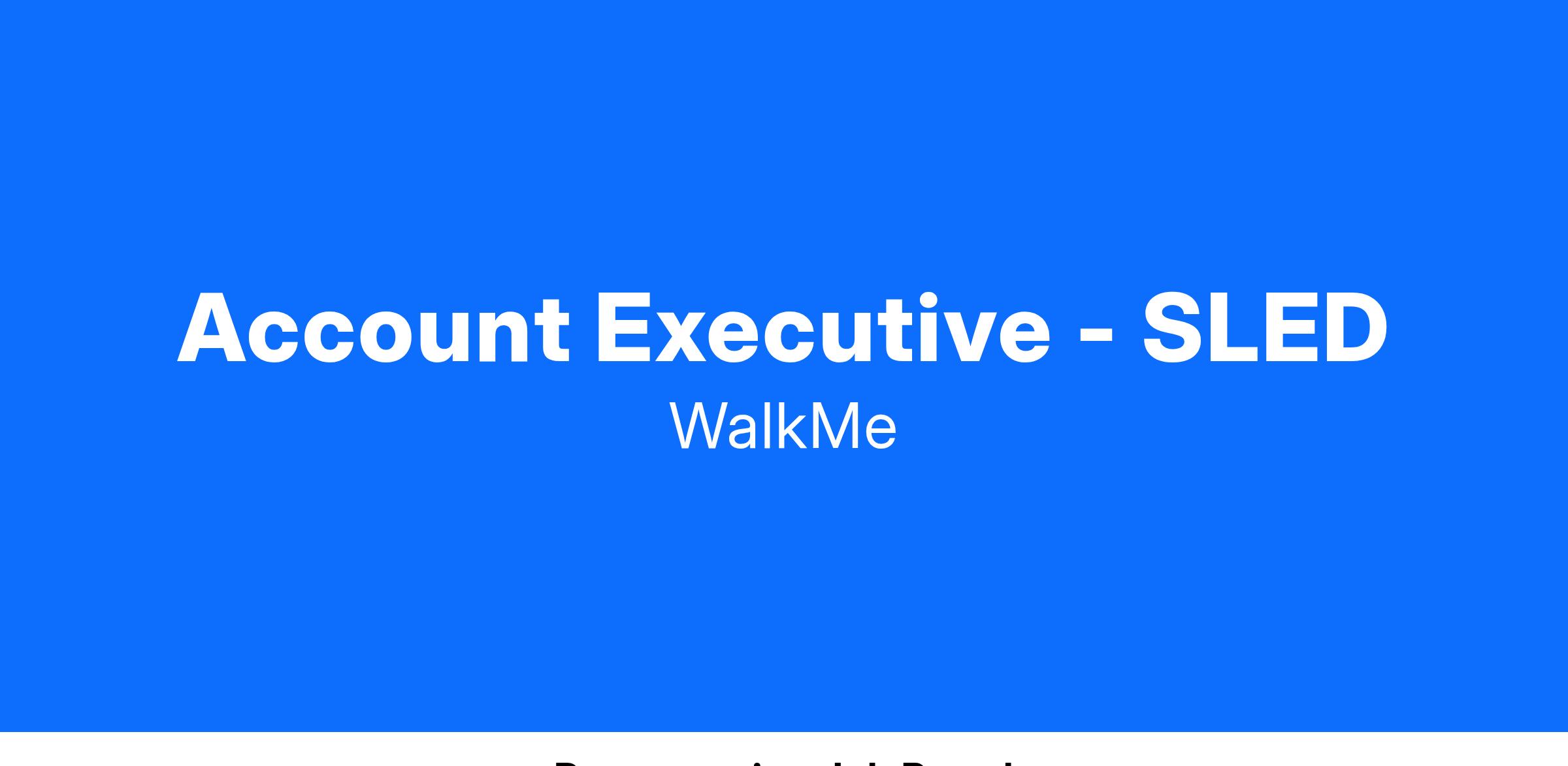 As an Account Executive for the SLED team at WalkMe, you will report to our Director, SLED, and will develop relationships in the State and Local Government sector, Partners, Resellers and Systems Integrators. You will partner with our Sales Engineering, Account Management, and BDR teams. WalkMe Account Executives lead a consultative sales cycle based on value selling across multiple departments within each client. This is a remote position, covering the California territory.