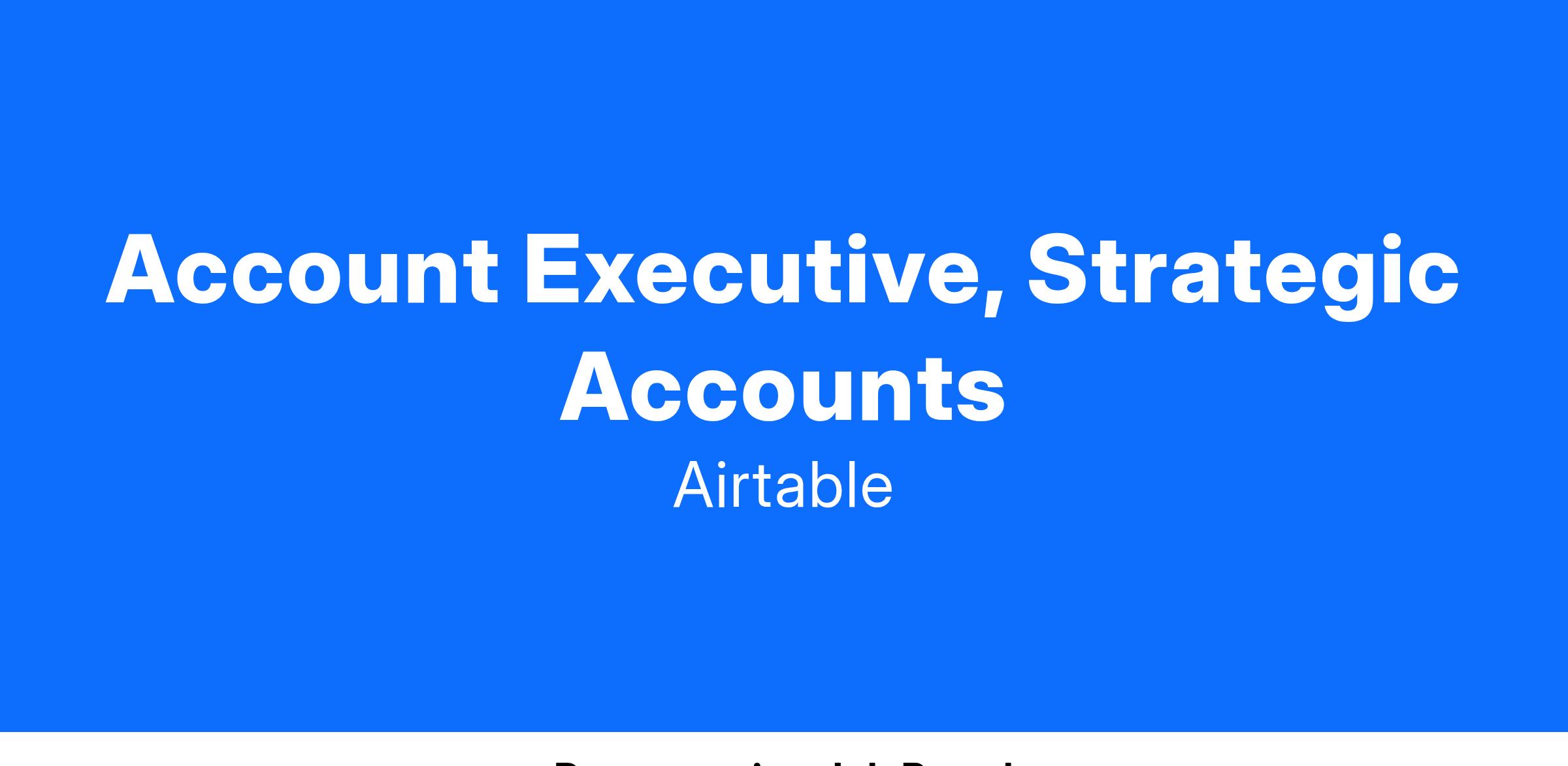 As a Strategic Account Executive at Airtable you will have the opportunity to work closely with a variety of strategic accounts across the Fortune 500 globally. Each client has unique needs and you act as a trusted business advisor, helping them effectively leverage our product to drive maximum impact for their business.