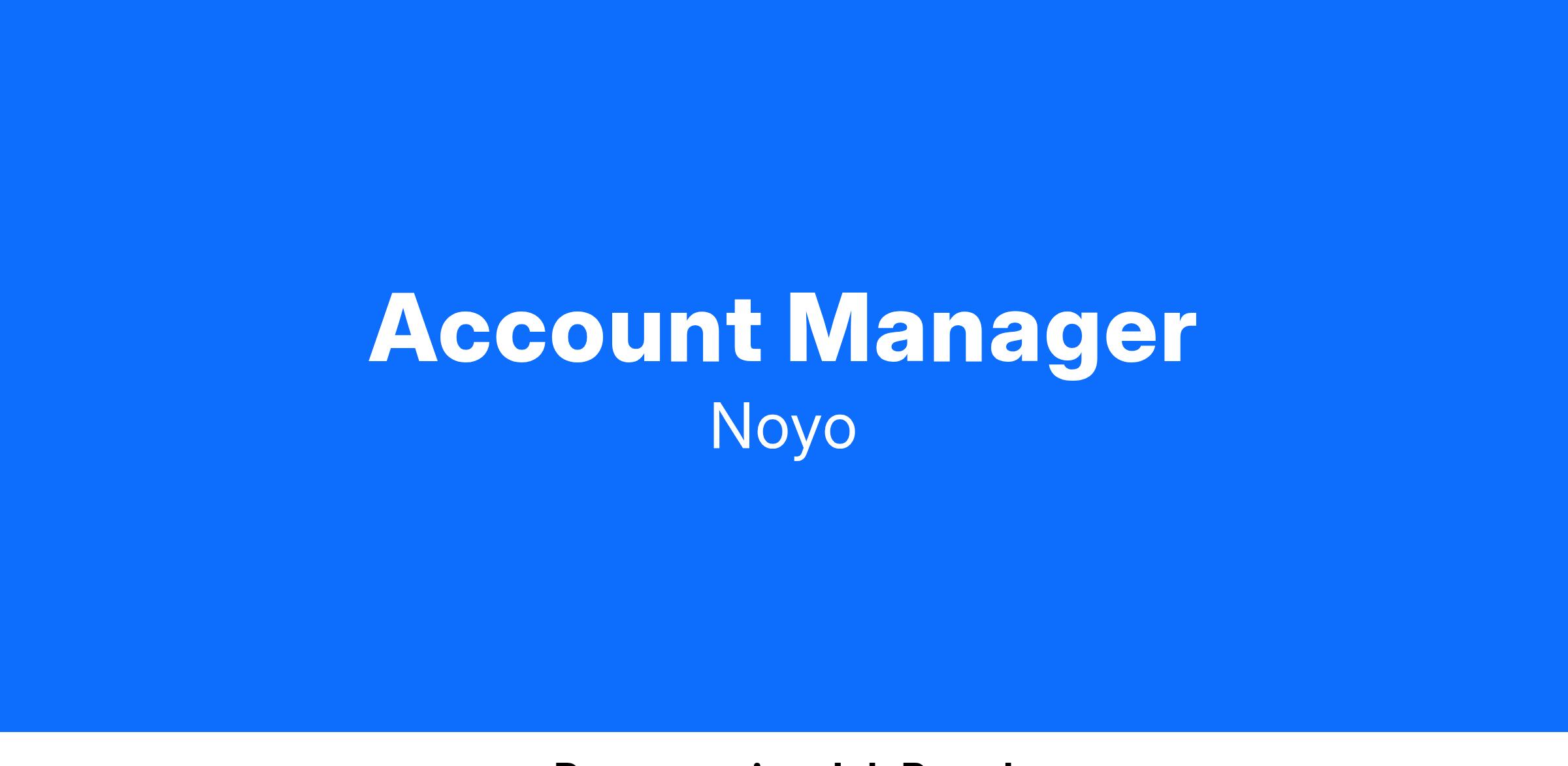 - Account Managers at Noyo are responsible for managing the strategic partnership, retention, renewals and expansions of existing Noyo accounts by crafting compelling expansion and ROI stories. You will act as the customerβs key strategic partner, driving growth and expansion of their reliance on Noyo as a key vendor to their overall business success.