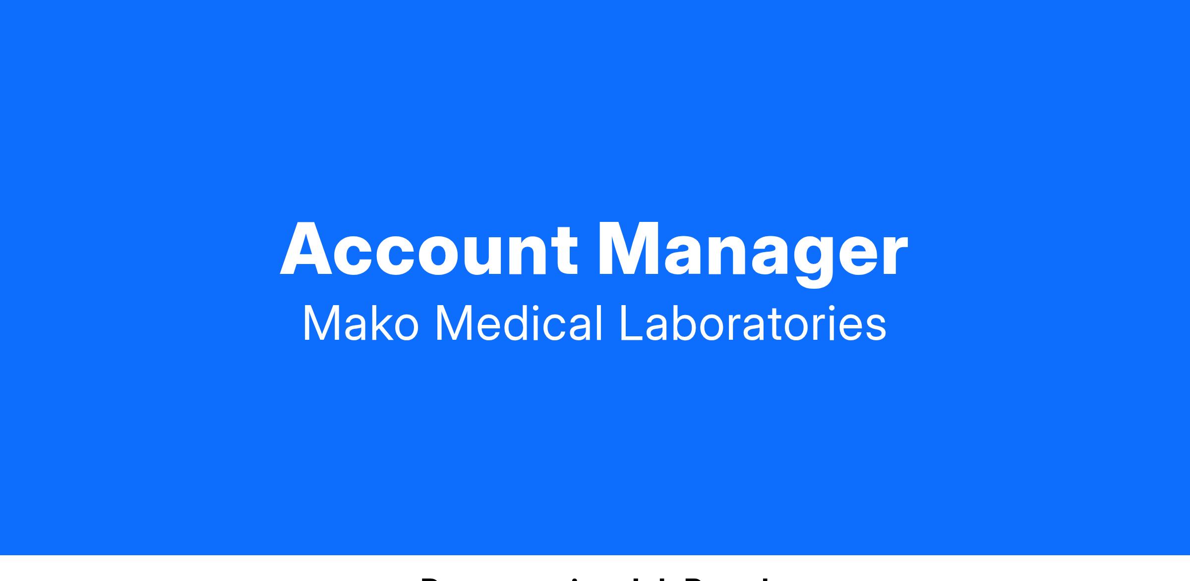 The Account Manager retains and monitors existing Mako clients by assuring client satisfaction, improve communications between the laboratory, other departments and clients, identify and resolve problems, instill client loyalty and ensure delivery of the highest possible level of service to the client. The role will assist with client inquiries about testing and help to troubleshoot and resolve problems. He/She will help to develop resolution to improve processes between sales/account management and the laboratory, troubleshooting issues effectively, within a timely manner to satisfy the clients.