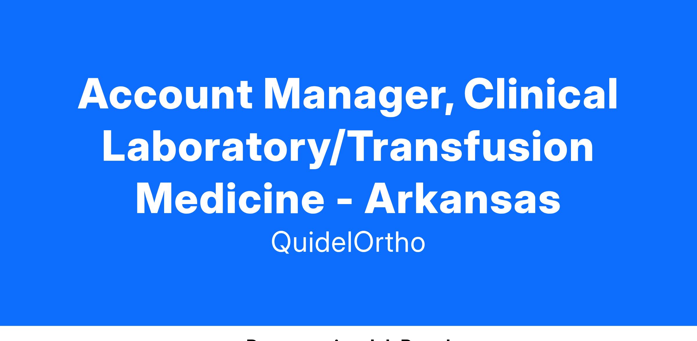As we continue to grow as QuidelOrtho, we are seeking an Account Manager, Clinical Laboratory/Transfusion Medicine in Arkansas. The Account Manager, CL/TM is a front-line, customer-facing, quota-carrying role responsible for driving sales and growth of QuidelOrtho’s Clinical Laboratory (CL) and Transfusion Medicine (TM) product lines. This role manages a geographic territory or a portfolio of named accounts, serving as the primary point of contact for customers. Key responsibilities include achieving instrument sales targets, growing assay and reagent utilization, and ensuring customer retention. The role requires a consultative, value-driven sales approach, supported by collaboration with cross-functional teams to deliver tailored solutions that meet customer needs. Success in this position is measured by the ability to meet territory revenue and profitability goals while delivering a best-in-class customer experience. This is a field based position supporting and located in Arkansas.