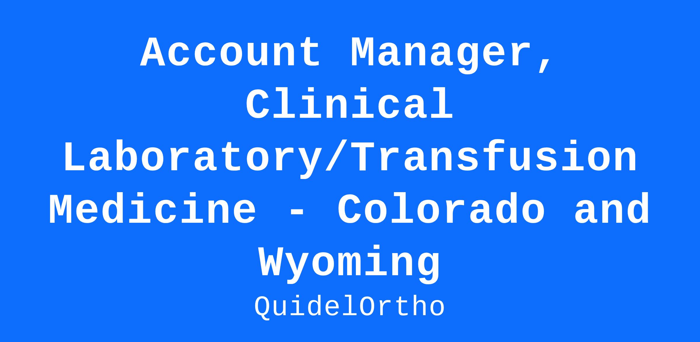 As we continue to grow as QuidelOrtho, we are seeking an Account Manager, Clinical Laboratory/Transfusion Medicine in Colorado and Wyoming. The Account Manager, CL/TM is a front-line, customer-facing, quota-carrying role responsible for driving sales and growth of QuidelOrtho’s Clinical Laboratory (CL) and Transfusion Medicine (TM) product lines. This role manages a geographic territory or a portfolio of named accounts, serving as the primary point of contact for customers. Key responsibilities include achieving instrument sales targets, growing assay and reagent utilization, and ensuring customer retention. The role requires a consultative, value-driven sales approach, supported by collaboration with cross-functional teams to deliver tailored solutions that meet customer needs. Success in this position is measured by the ability to meet territory revenue and profitability goals while delivering a best-in-class customer experience. This is a field based position supporting and located in Colorado or Wyoming.