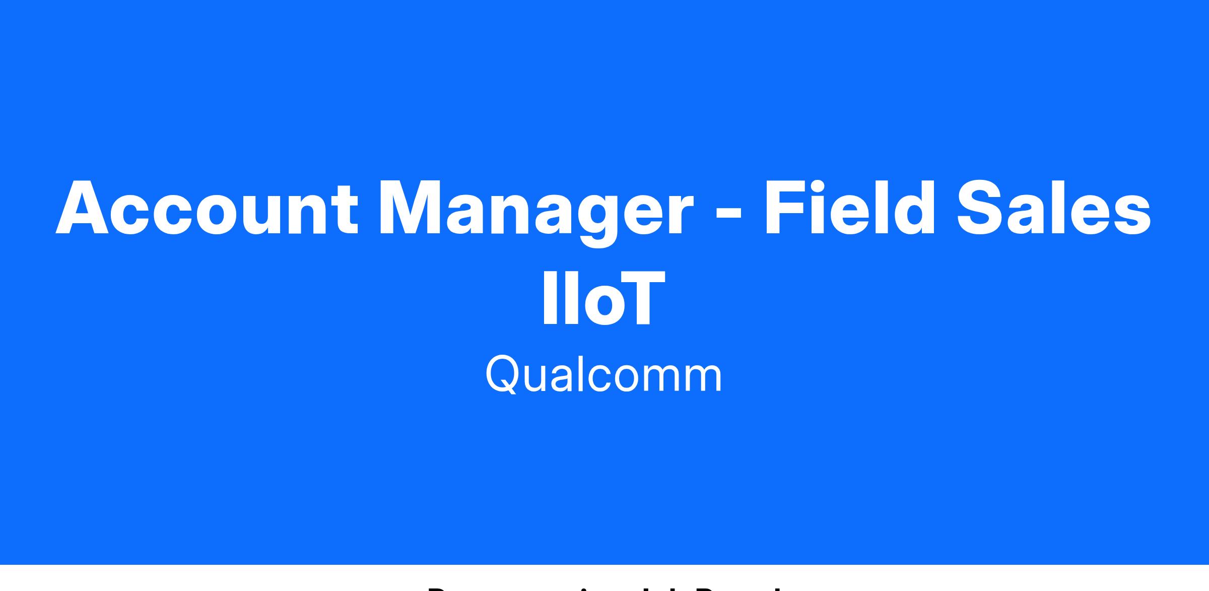 The IIoT (Industrial IoT) field sales manager for North America is responsible for growing Qualcomm revenue in specific determined Industrial accounts. He/she will focus on and close new revenue-generating business opportunities for Qualcomm with a focused product set. The IIoT Field Sales Manager is ultimately the Qualcomm customer lead for his/her named accounts.