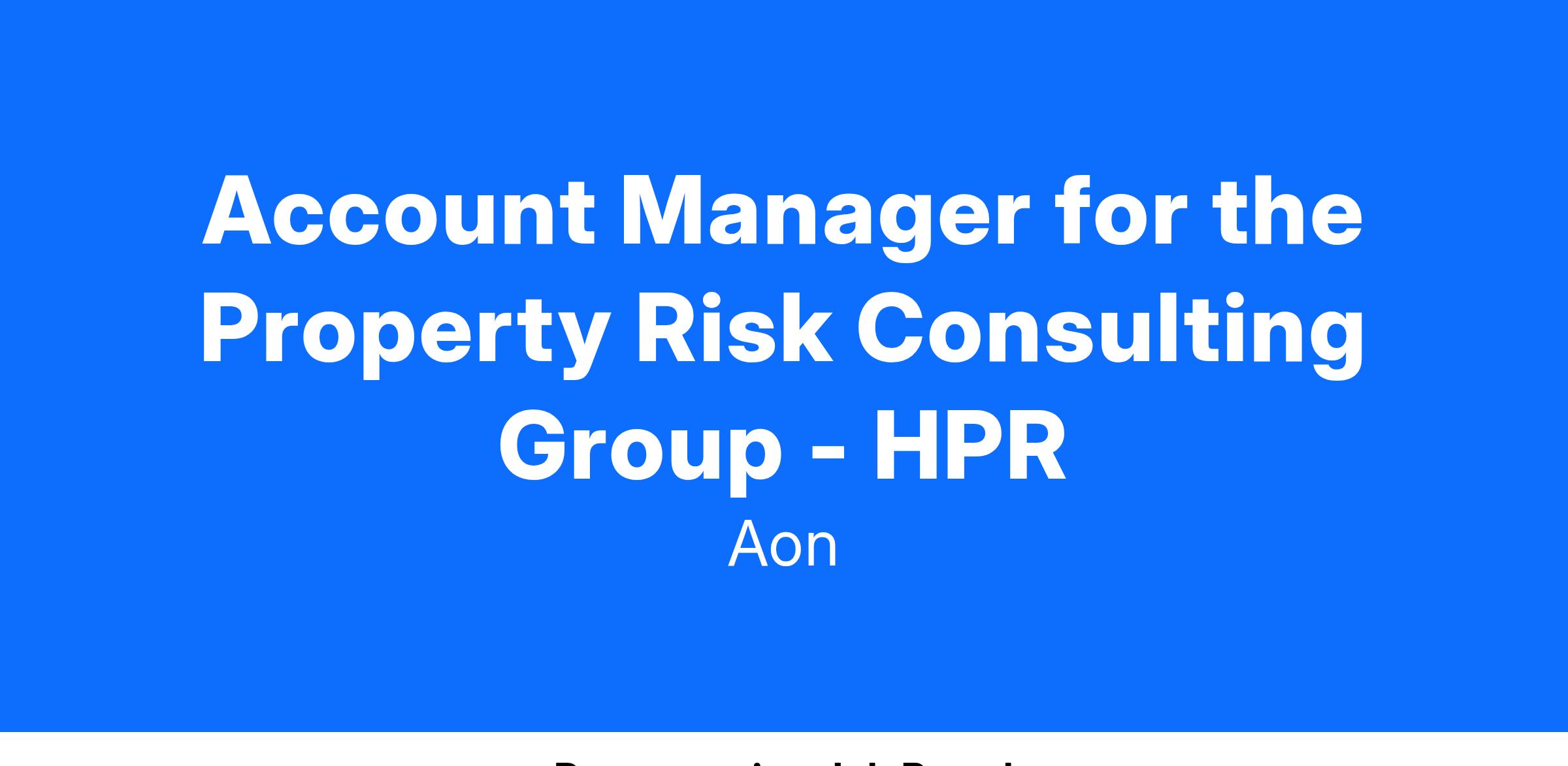 Account Manager for the Property Risk Consulting Group - HPR