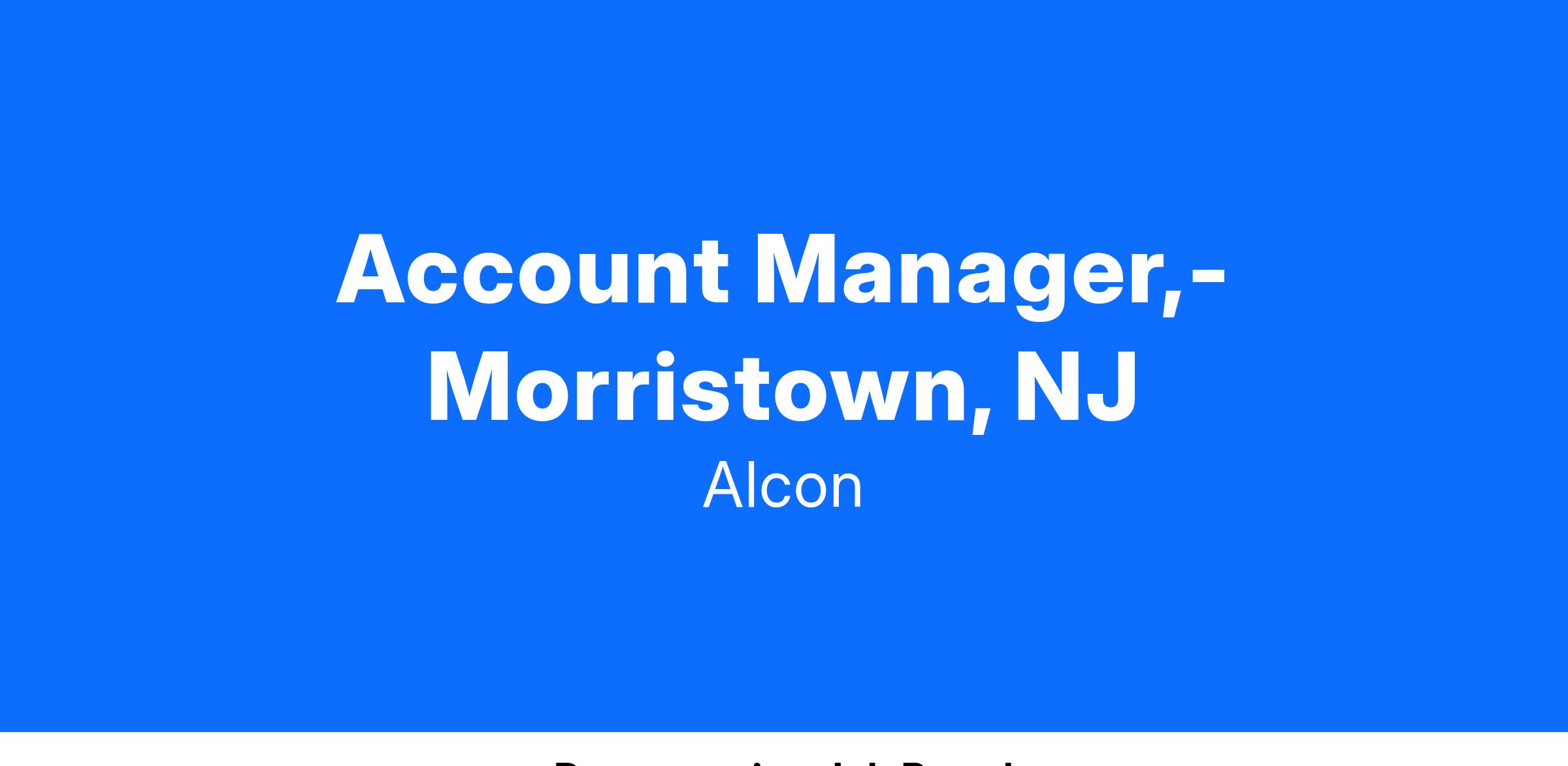 Account Manager- Morristown, NJ