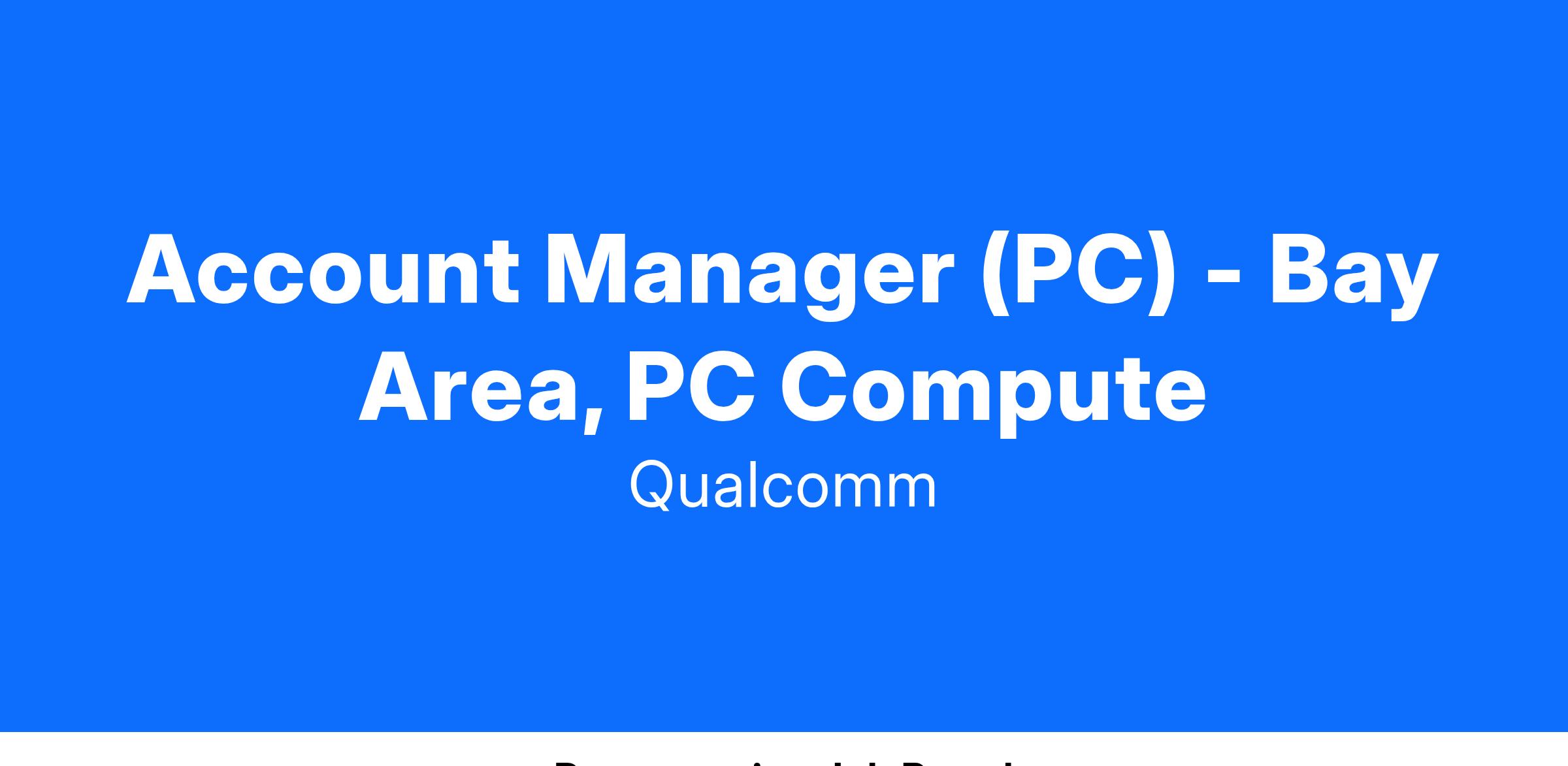 The Account Manager will be responsible for driving net new Corporate and Enterprise pipeline to help grow our Snapdragon Compute market share.