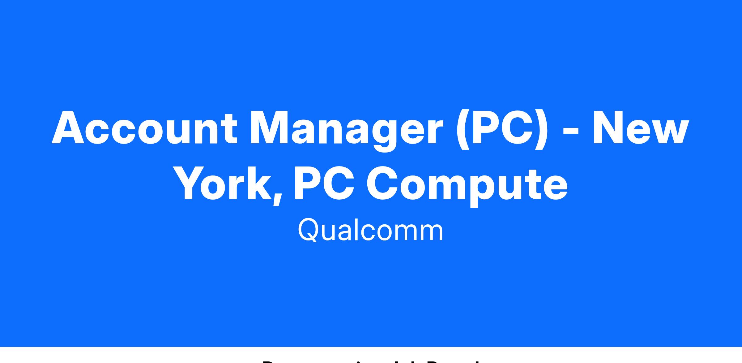 The Account Manager will be responsible for driving net new Corporate and Enterprise pipeline to help grow our Snapdragon Compute market share.