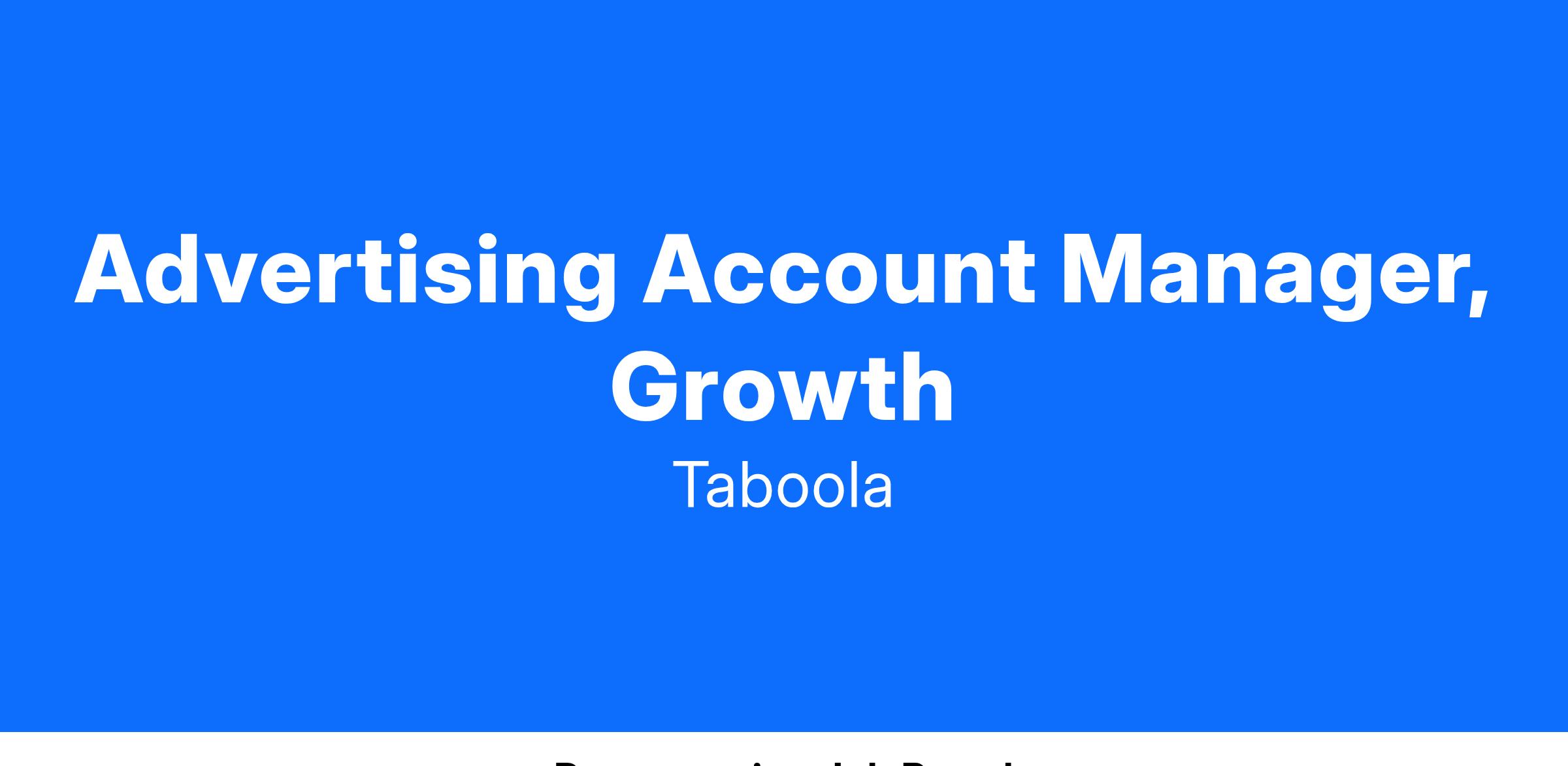 As an Account Manager, Growth Advertisers, you will work with Taboola’s Small and Medium sized clients to drive advertiser success by educating, consulting, onboarding and providing strategic advice. You will use your expert communication skills and passion for digital advertising, enhance your analytical and consultative skills in a fast-paced environment. This role is an outstanding opportunity for a customer-focused and data-driven individual interested in establishing themselves as a digital advertising authority, and driving impact at scale through cross-functional collaboration with Taboola’s world class teams.