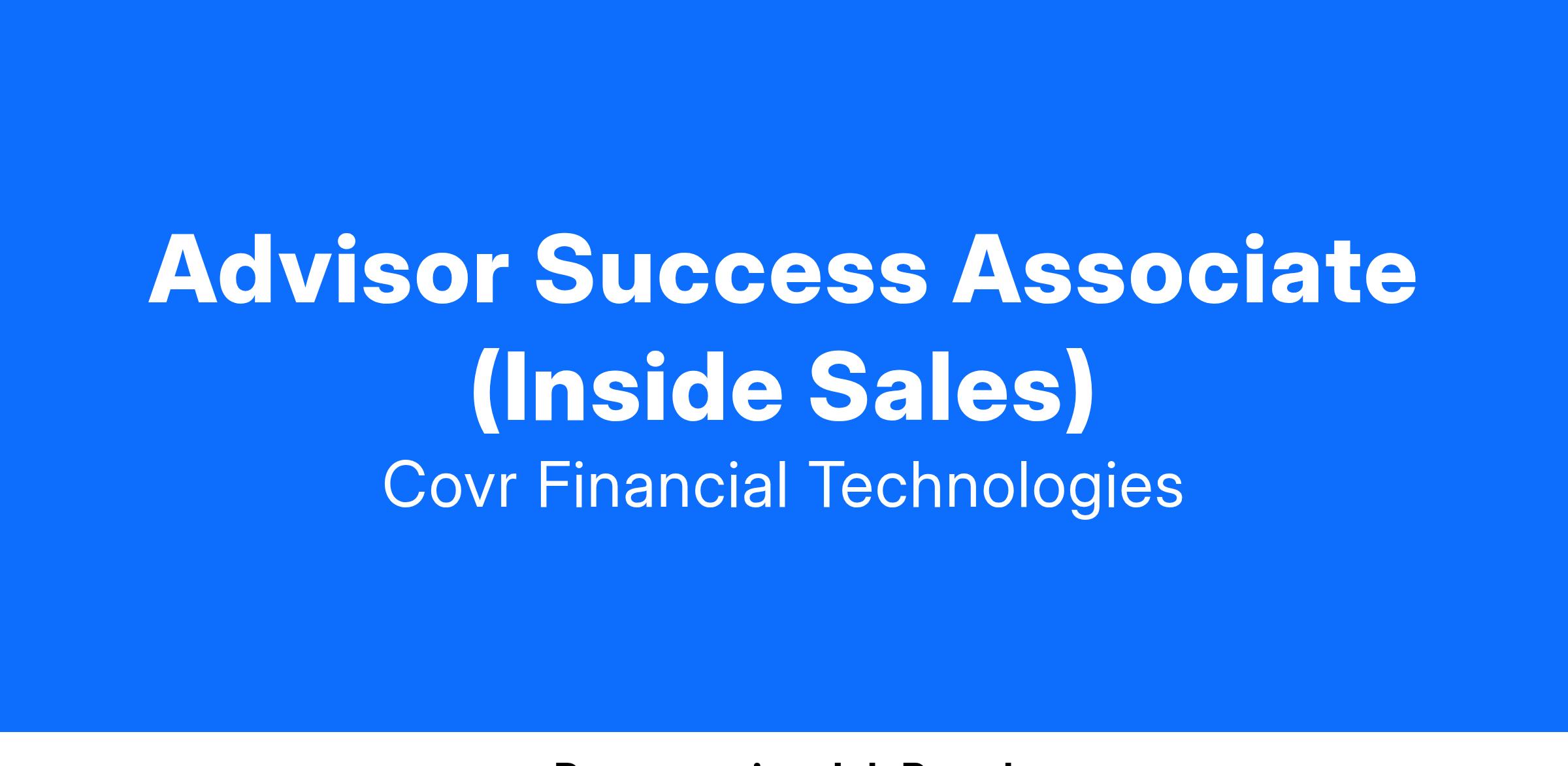 Advisor Success Associate (Inside Sales)