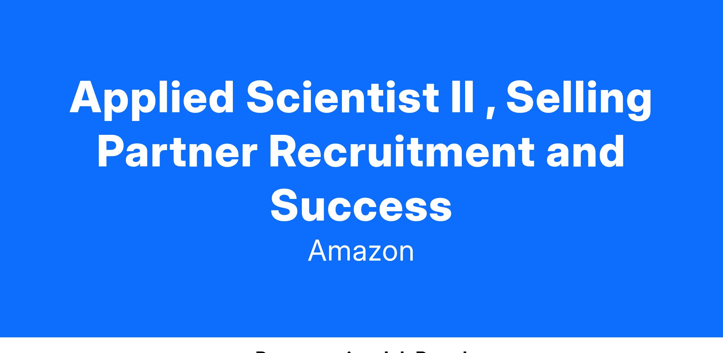 Applied Scientist II , Selling Partner Recruitment and Success