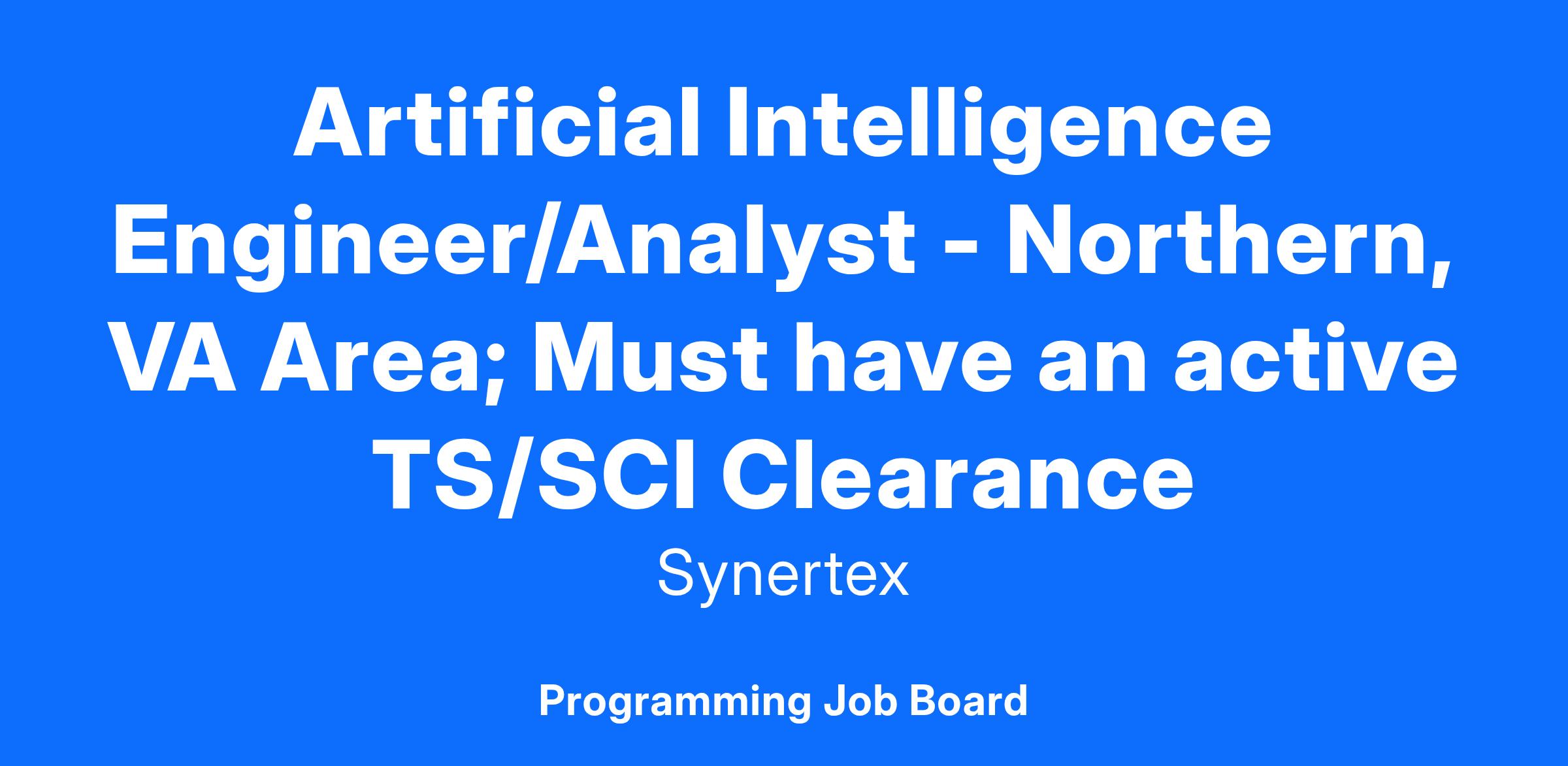 Join Synertex and apply your expertise to a mission that matters. We're seeking an AI Engineer/Analyst with a strong background in AI model development, data governance, and stakeholder engagement to support critical federal and intelligence community initiatives. If you're passionate about building innovative AI solutions and thrive in a fast-paced, mission-driven environment, this opportunity is for you.