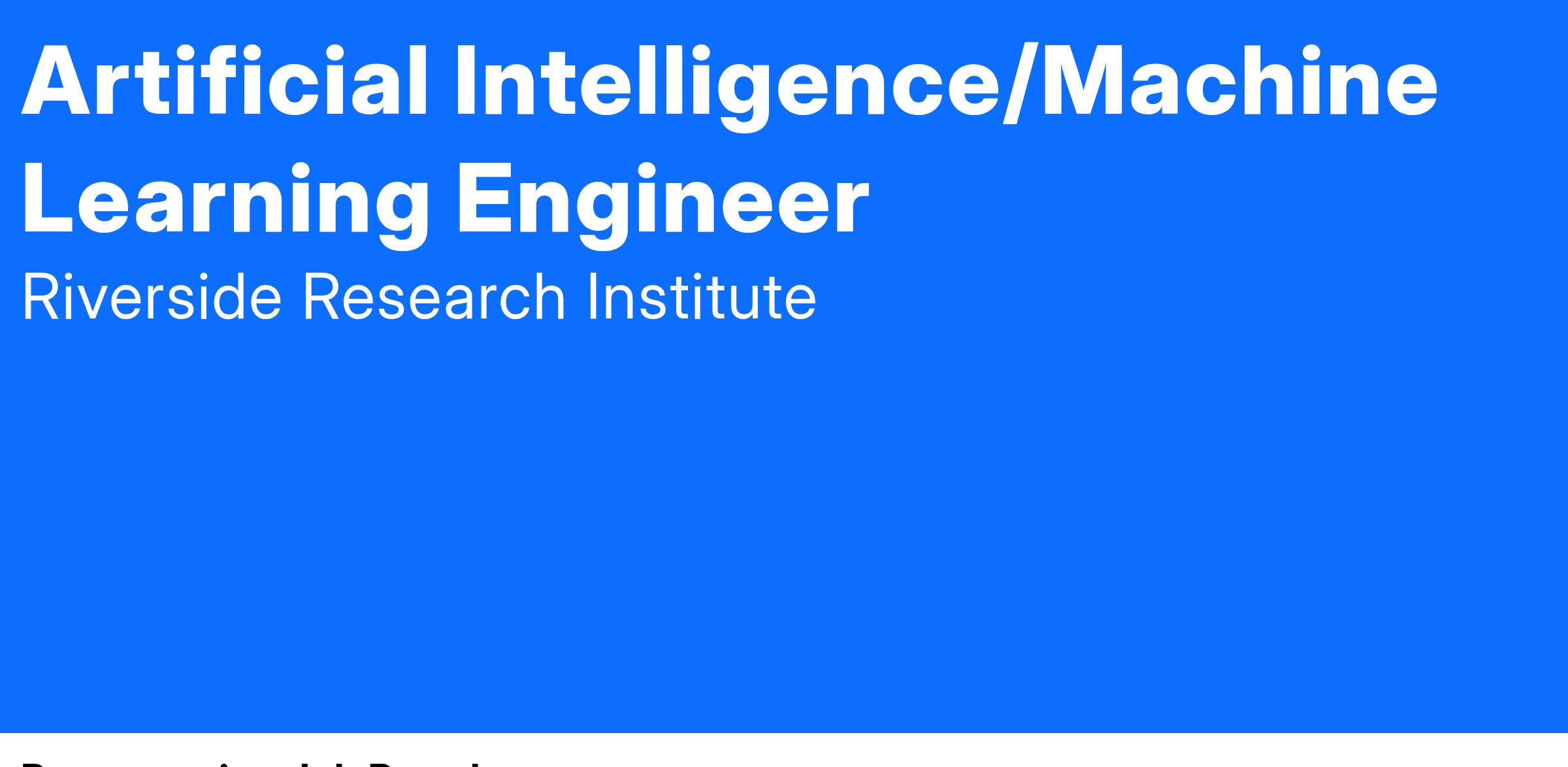 Riverside Research is seeking an Artificial Intelligence / Machine Learning Engineer to support existing contracts to prototype and develop automation solutions to NASIC’s most difficult Scientific & Technical Intelligence problems. As a highly valued and sought-after Riverside Research employee, you will be part of a highly skilled and integrated team that analyzes intelligence data to discover opportunities for automated solutions.