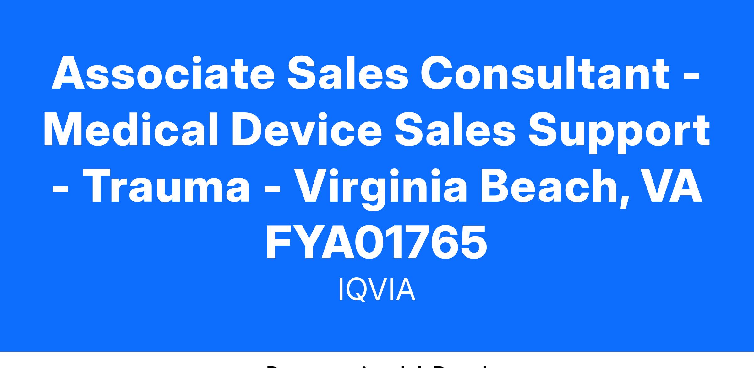 Associate Sales Consultant - Medical Device Sales Support - Trauma - Virginia Beach, VA FYA01765