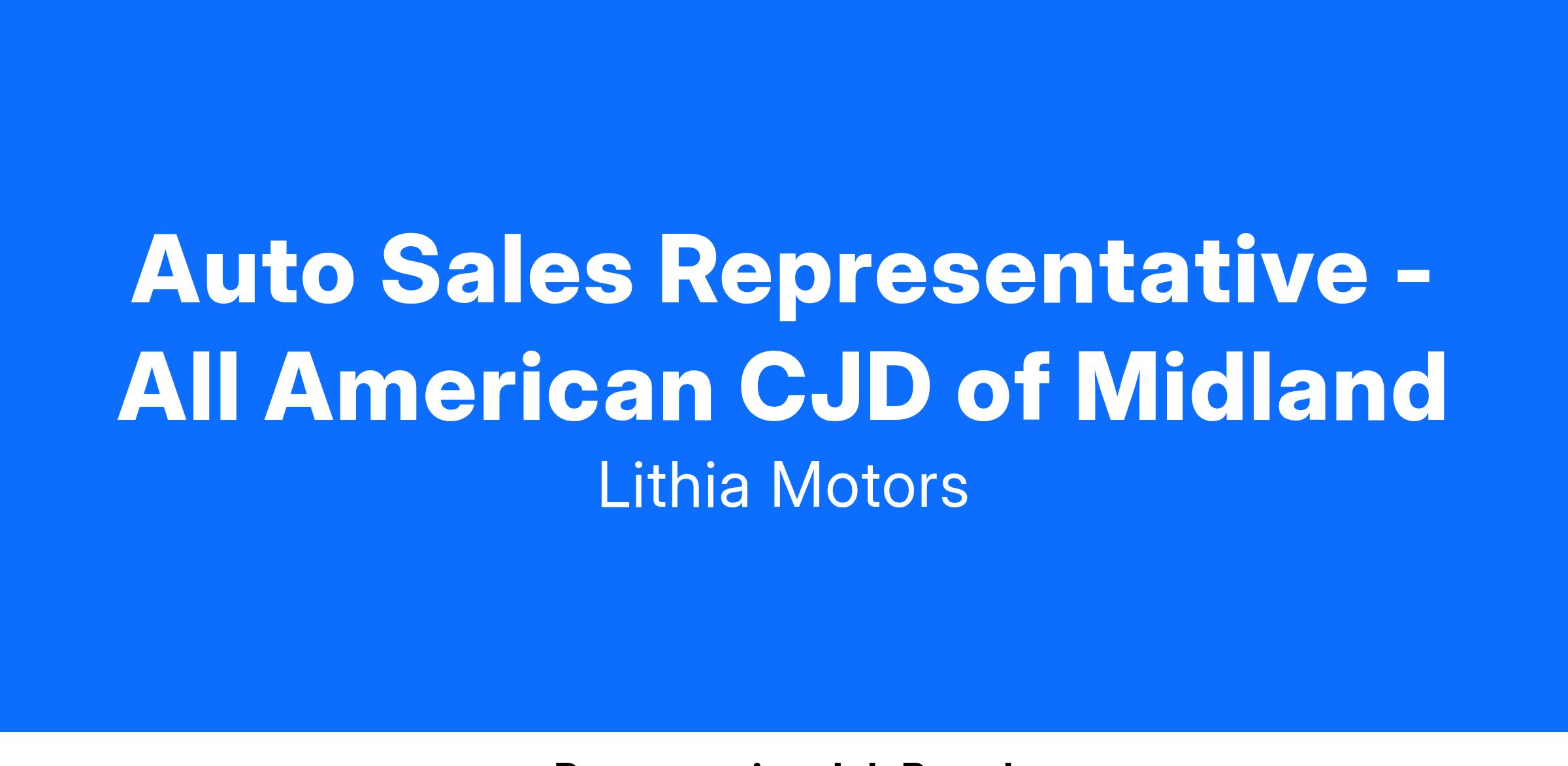 As an Auto Sales Representative you will interact and consult with customers to guide them through their vehicle purchase. Your goal is to create the best vehicle-buying experience to make lifelong customers. You will assist customers in selecting the right vehicle for their lifestyle. You will be trained on the specific products we offer and their benefit to our customer.