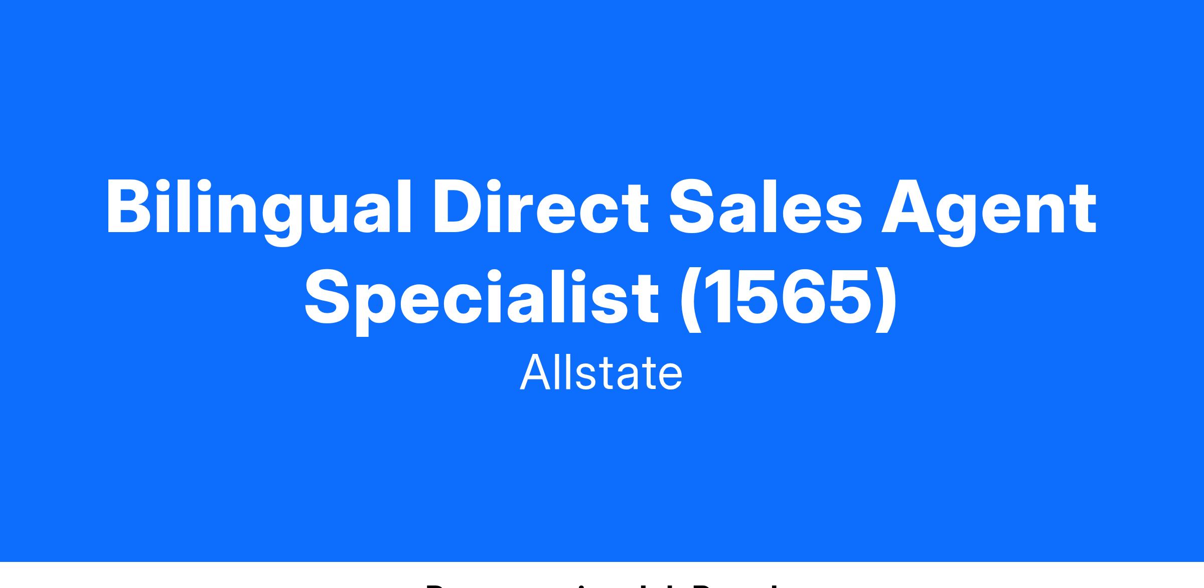 Bilingual Direct Sales Agent Specialist (1565)