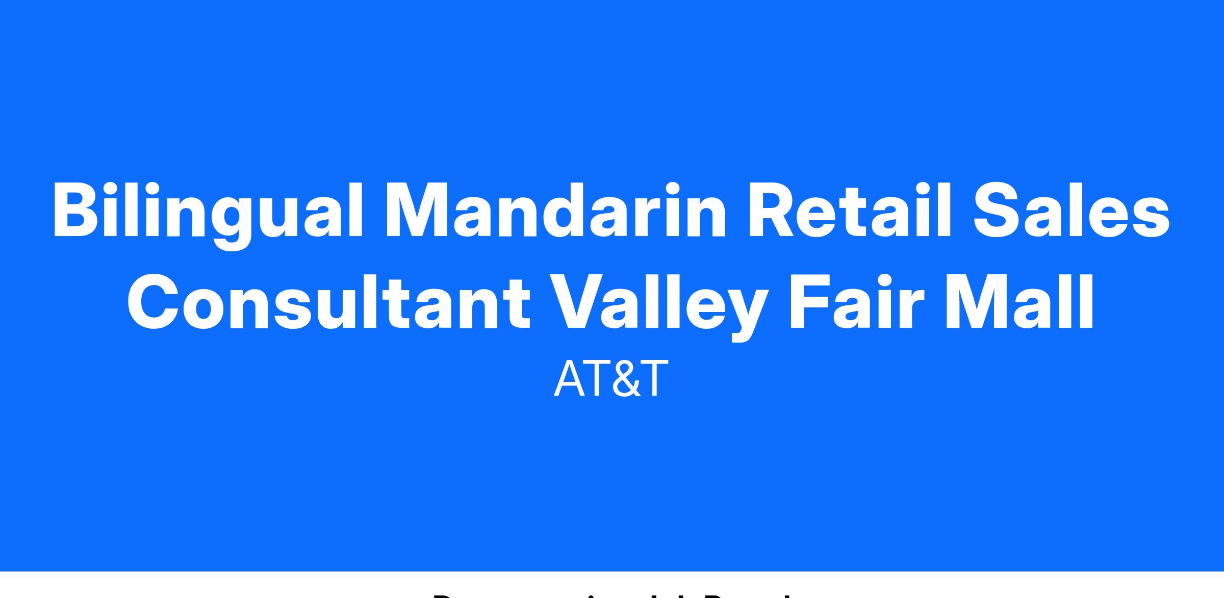 Bilingual Mandarin Retail Sales Consultant Valley Fair Mall