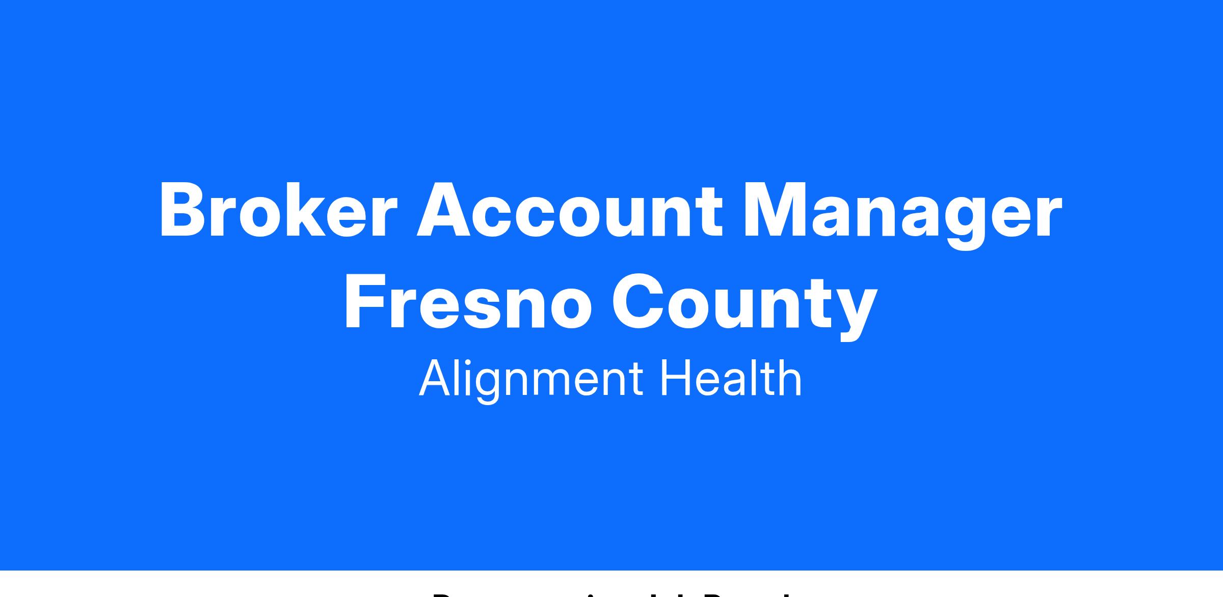 In overseeing the broker channel, the Broker Manager must live in or near Fresno County and will: