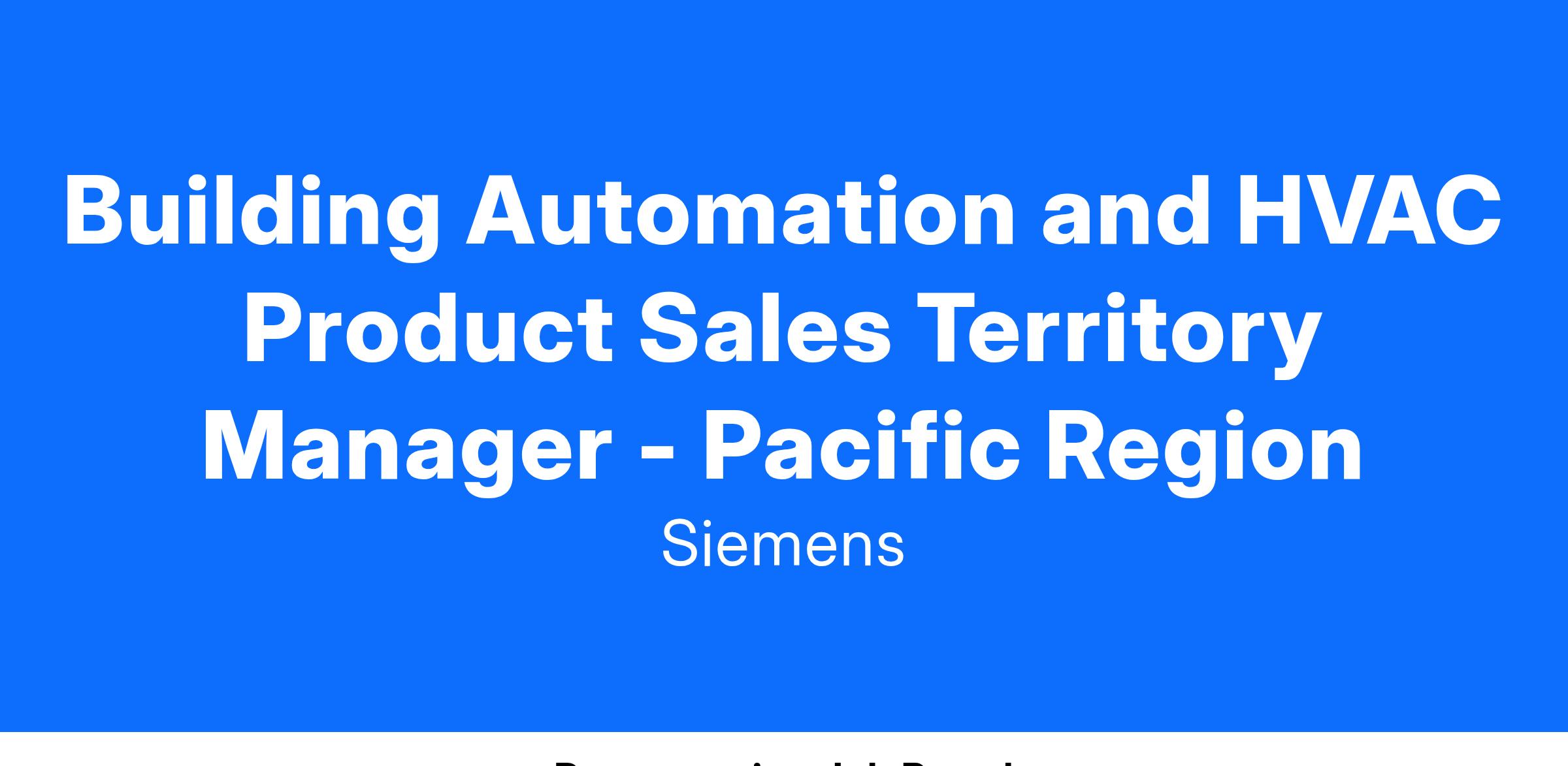 We are looking for a Territory Sales Manager located within CA, OR, WA & AK, who is responsible for managing and driving building automation controls and HVAC Product sales through contractor and distributor channels. This position will be based at the Territory Sales Manager’s residence (remote) and is expected to travel up to 50%.