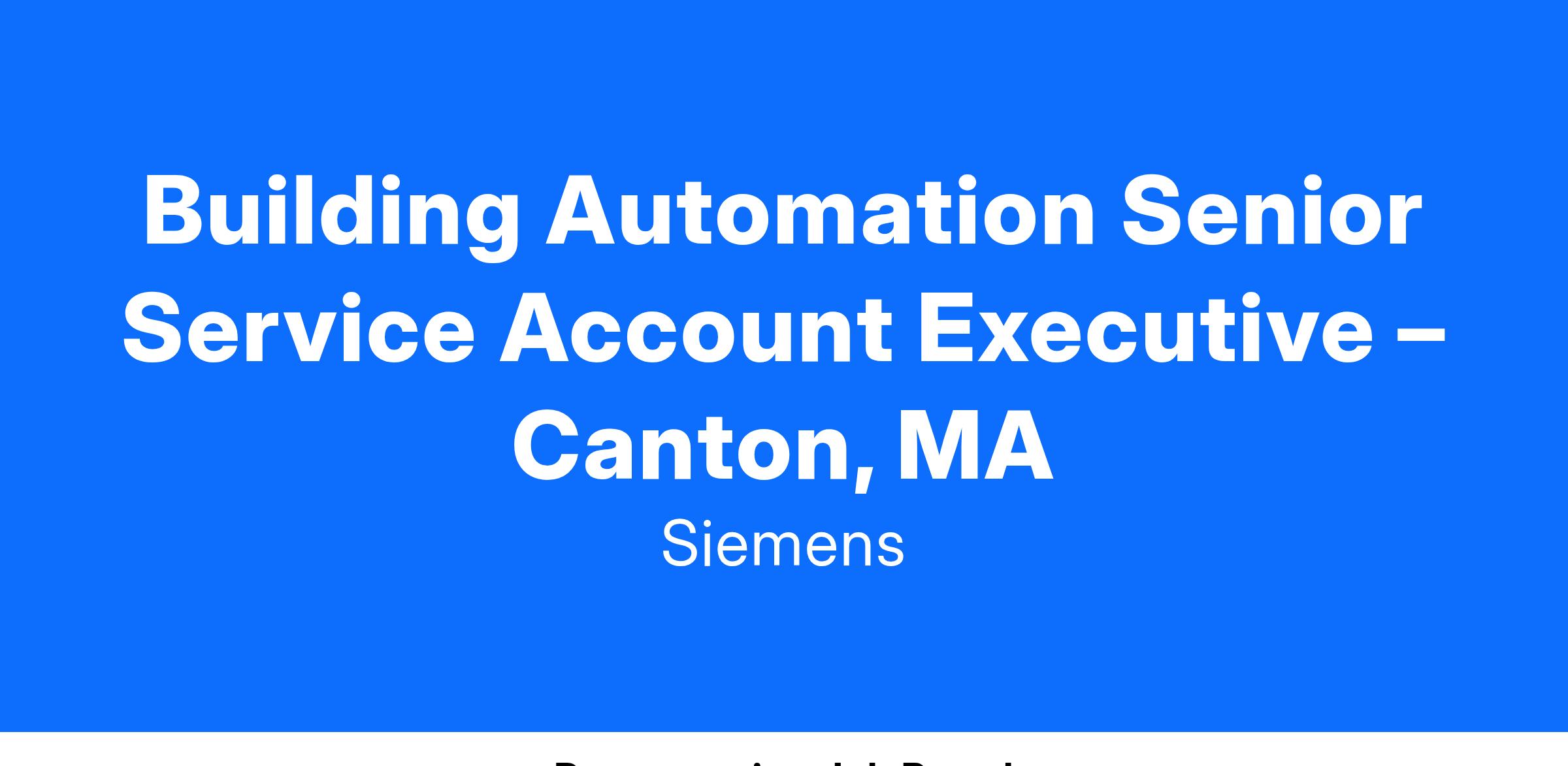 The Senior Service Account Executive is committed to supporting our Service Agreements business within our commercial Smart Buildings Automation Controls Service team. Our Sales team supports our Building Automation Operations team whose focus is to perform automation service and maintenance in large commercial buildings such as hospitals, universities, and industrial facilities. Why is this so important? Our Sales Executives are ambassadors of quality Siemens technology, products and services, and your expertise and regular interaction with the customers will help them optimize and facilitate a safe, emergency-ready workplace.
