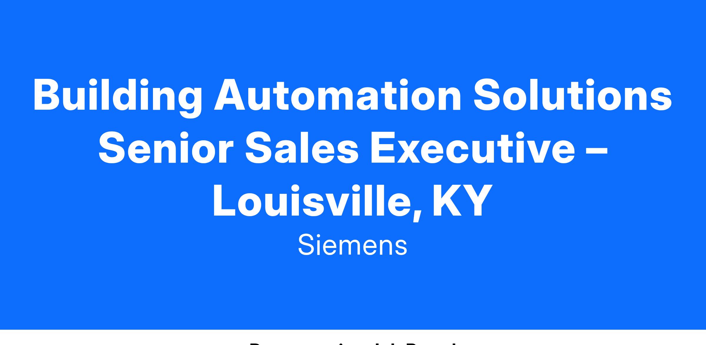 The Solutions Senior Sales Executive is committed to supporting our new construction business within our commercial Smart Buildings Automation Controls Solutions team. Our Solutions Sales team will achieve booking and profit goals by developing and implementing plans to grow, develop, and manage contractor, consultant, developer, and end-user relationships; capitalize on sales opportunities within the territory; and effectively execute sophisticated deals independently within our established guidelines. Why is this so important? Our Sales Executives are ambassadors of quality Siemens technology, products and services, and your expertise and regular interaction with the customers will help them optimize and facilitate a safe, emergency-ready workplace.