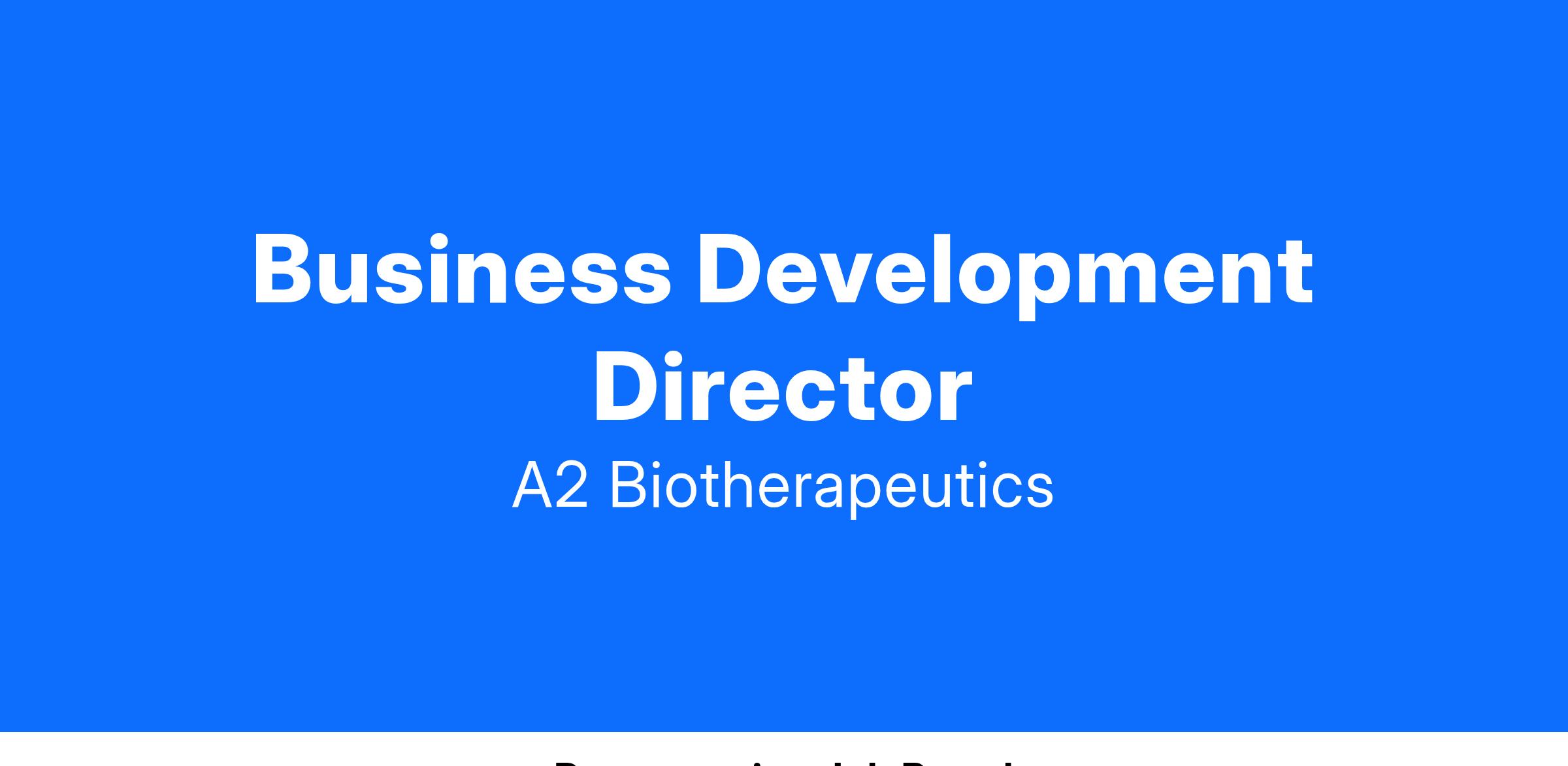 The Business Development and Corporate Strategy Director will report to the Chief Business Officer. The Director will be responsible for supporting our corporate strategy and strategic partnership activities at A2 Biotherapeutics (A2 Bio). Key activities may include: executing and supporting transactions for licensing, research collaborations, co-development, channel relationships, and other relevant alliances to help grow the Company.