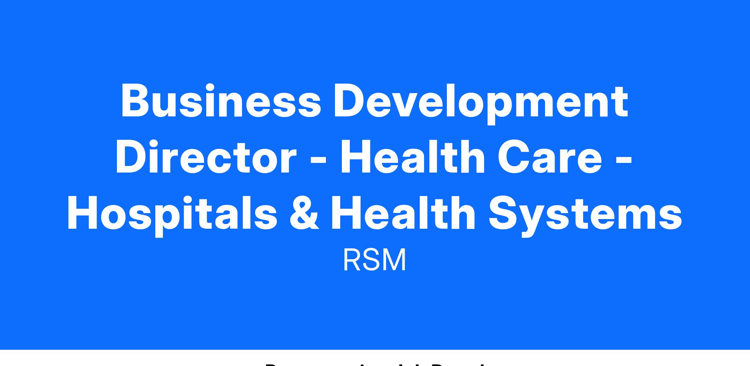 RSM's growing Health Care team is looking to add a dynamic Business Development Director in key markets accross the U.S. The Business Development Director will be responsible for driving growth of the firm's professional services within Hospitals & Health Systems and will represent all services provided by our three primary functional areas, audit, tax, and consulting.