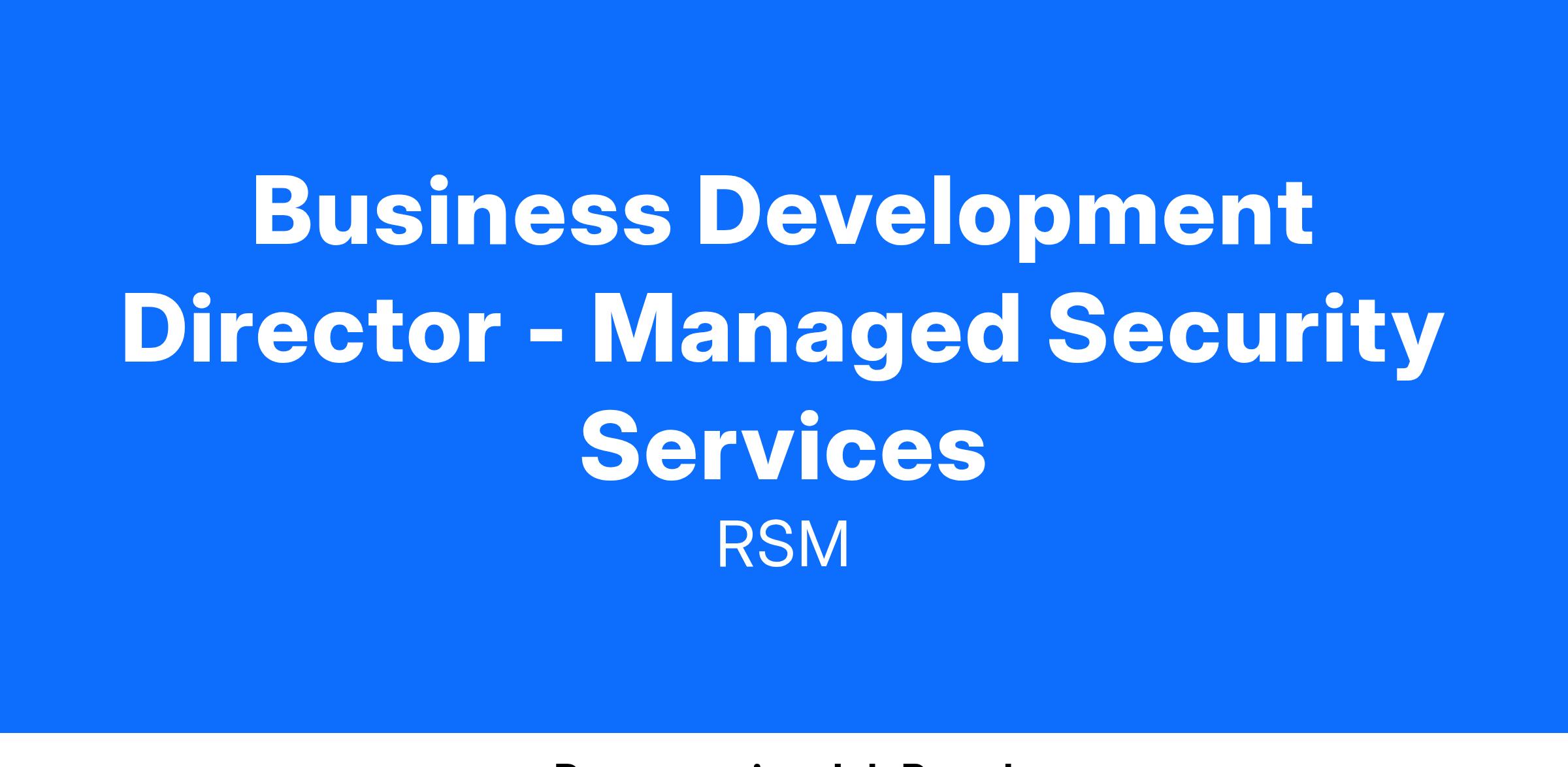 Business Development Director – RSM Managed Security Services