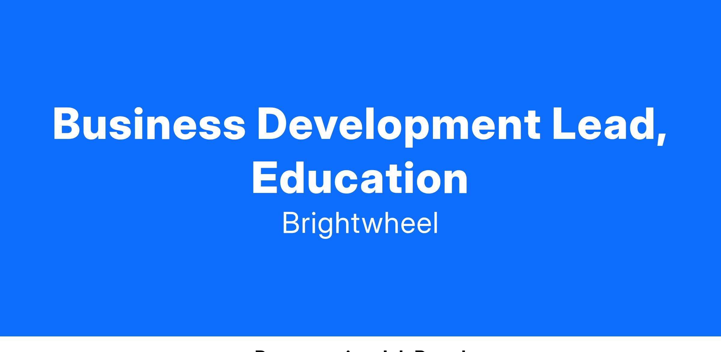 Do you have a proven track record of developing strategic partnerships, expanding business opportunities, and leading go-to-market efforts? We are seeking a Business Development Lead to play a crucial role in driving strategy for our business expansion into Education for our Government & Enterprise Team. You have previous experience in an early-stage sales role at a fast-growing startup. You are a self-starter and are comfortable spending time researching the space to understand competitors and how to position brightwheel. You have previous experience navigating highly complex sales processes involving multiple C level decision makers and closing 6-figure deals. You are comfortable owning a process from start to finish and thrive in highly ambiguous environments.