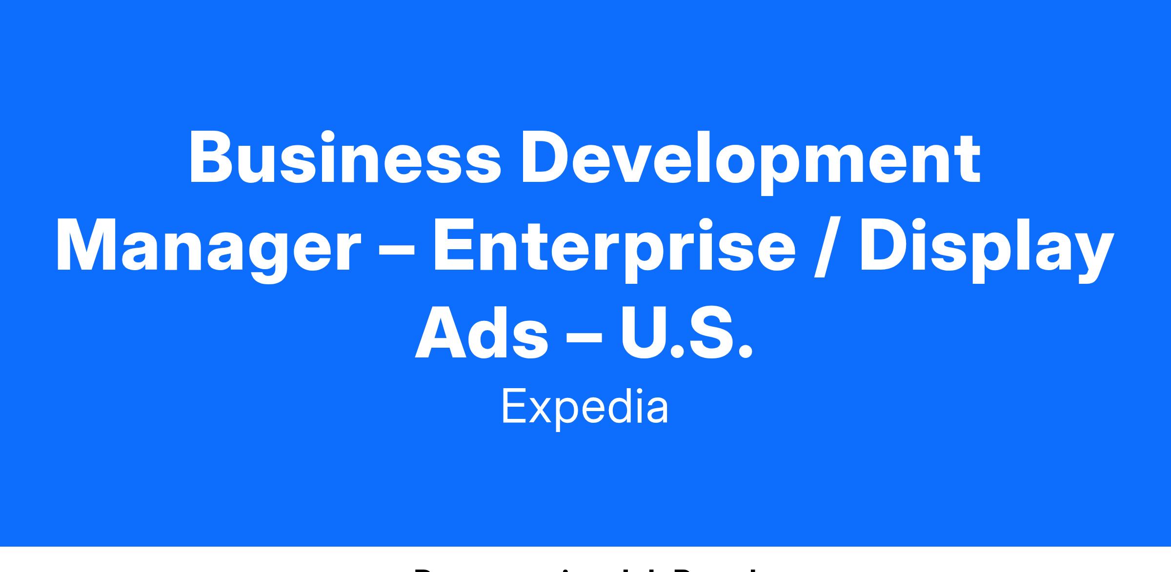 Business Development Manager – Enterprise / Display Ads – U.S.