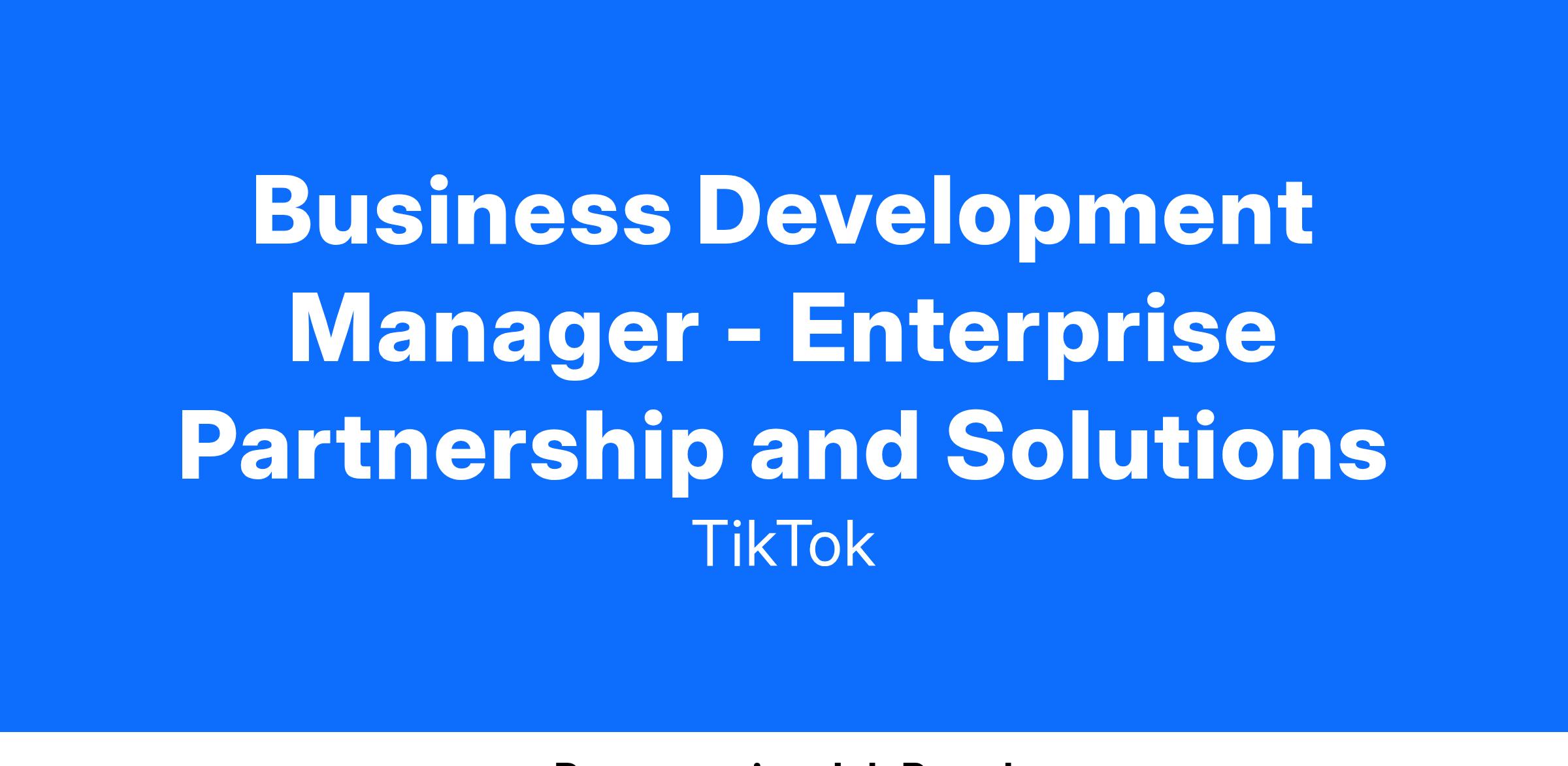 TikTok is the leading destination for short-form mobile video. Our mission is to inspire creativity and bring joy. TikTok has global offices including Los Angeles, New York, London, Paris, Berlin, Dubai, Singapore, Jakarta, Seoul and Tokyo. Why Join Us Creation is the core of TikTok's purpose. Our platform is built to help imaginations thrive. This is doubly true of the teams that make TikTok possible. Together, we inspire creativity and bring joy - a mission we all believe in and aim towards achieving every day. To us, every challenge, no matter how difficult, is an opportunity; to learn, to innovate, and to grow as one team. Status quo? Never. Courage? Always. At TikTok, we create together and grow together. That's how we drive impact - for ourselves, our company, and the communities we serve. Join us. The Strategic Partnerships team is a critical means by which we drive collaborations for all products with developer and Platform partners. For the role of business development manager, we are looking for an experienced BD manager to build partnerships with developers and platform companies. Responsibilities - What You'll Do • Have a deep understanding of LLM/app stores/mini apps/search/developer platform products • Build and manage relationships with developers and platform companies. Be able to complete API/mini program integration with these partners to improve product experience • Achieve goals through professional negotiation skills and network resources • Propose product innovation and improvement suggestions based on product needs and actual technical capabilities, and be responsible for implementation • Work closely with cross-functional teams(like product, operation, marketing, PR and legal teams) to carry out global projects and track performance• Bachelor degree or above, or equivalent practical experiences • Business development experience with a deep understanding of the mobile apps/search industry. Work experience in apps store and developer platform is a plus • Strong negotiation/communication skills and project management skills. Be able to drive the project from initiation through execution • Willing to step out of the comfort zone and go extra mile to drive results in a fast-paced global organization • Engineering/Tech background is a plus TikTok is committed to creating an inclusive space where employees are valued for their skills, experiences, and unique perspectives. Our platform connects people from across the globe and so does our workplace. At TikTok, our mission is to inspire creativity and bring joy. To achieve that goal, we are committed to celebrating our diverse voices and to creating an environment that reflects the many communities we reach. We are passionate about this and hope you are too. TikTok is committed to providing reasonable accommodations in our recruitment processes for candidates with disabilities, pregnancy, sincerely held religious beliefs or other reasons protected by applicable laws. If you need assistance or a reasonable accommodation, please reach out to us at dataecommerce.accommodations@tiktok.com.