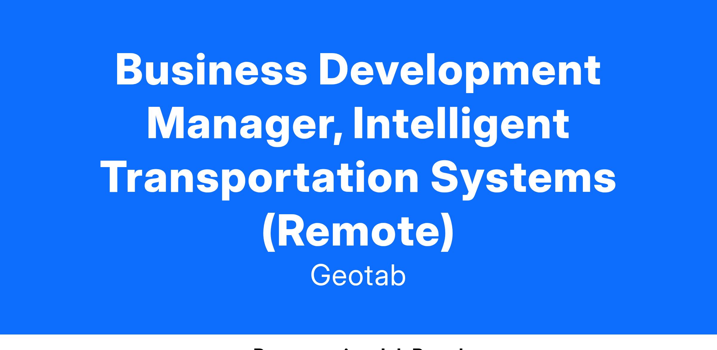 We are always looking for amazing talent who can contribute to our growth and deliver results! Geotab is seeking a Business Development Manager who will be responsible for the growth and development of new business relationships and revenues, providing vision for sales strategies and executing the associated plan.