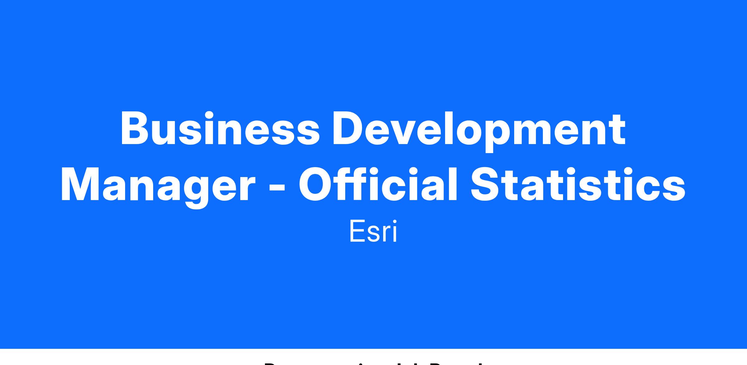At Esri, our business development managers collaborate with distributors to co-sell and promote the adoption of Esri technology. We invite you to utilize your enterprise sales and multi-channel software business development experience to provide geospatial software and solutions to the global community of census and official statistics organizations. You’ll work closely with Esri’s account teams, distributor network, and business partners to help customers optimize and expand adoption of Esri technology, identify new areas of growth, and deliver expertise that helps deliver on their mission and vision.