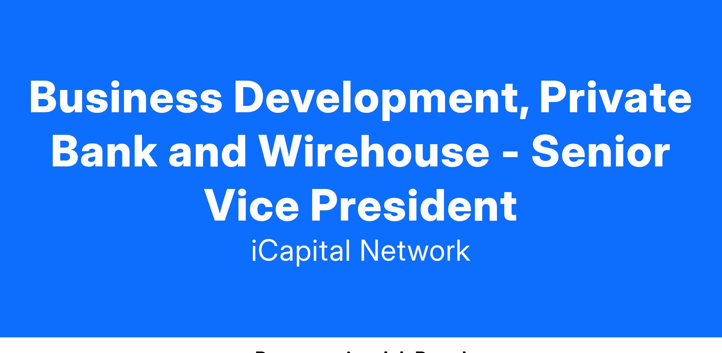 iCapital is seeking a highly motivated, outgoing, and experienced Business Development professional to join the team developing iCapital’s enterprise presence in the US wealth channel, particularly focusing on managing and growing relationships with our largest clients in Private Banks and Wirehouses. This role will be instrumental in growing our impact with these clients and delivering new and innovative products and solutions. This individual will drive new business initiatives and lead the development of our GTM strategy. Additional responsibilities include, but are not limited to, prospecting new relationships, crafting compelling pitch decks, developing market analysis and strategy, engaging with clients through various channels, negotiating contracts, and leading implementation efforts. This position offers a unique opportunity to contribute significantly across iCapital’s organization and to our success within the wealth management industry.