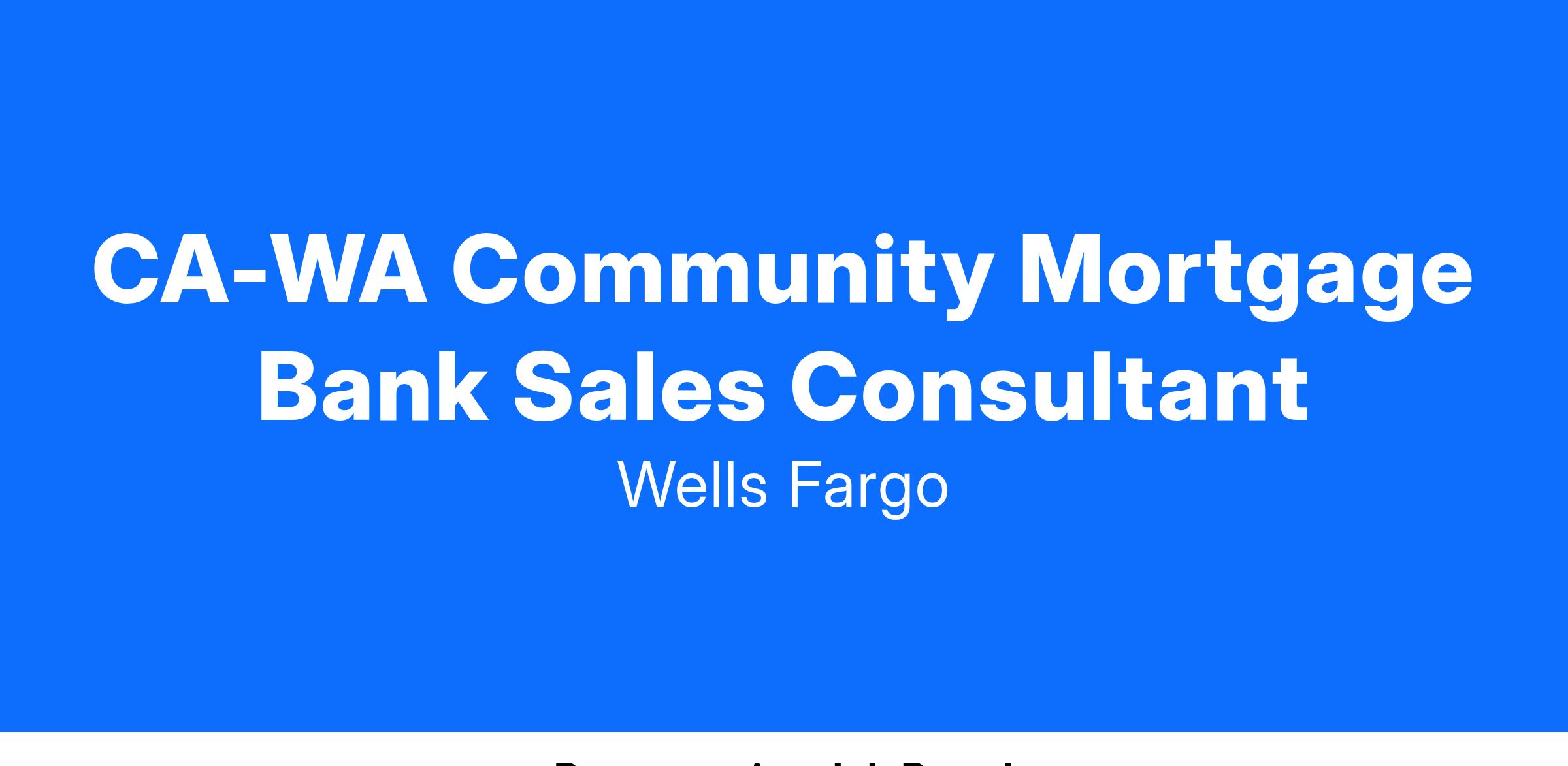 Wells Fargo is seeking a Mortgage Bank Sales Consultant (SAFE)...