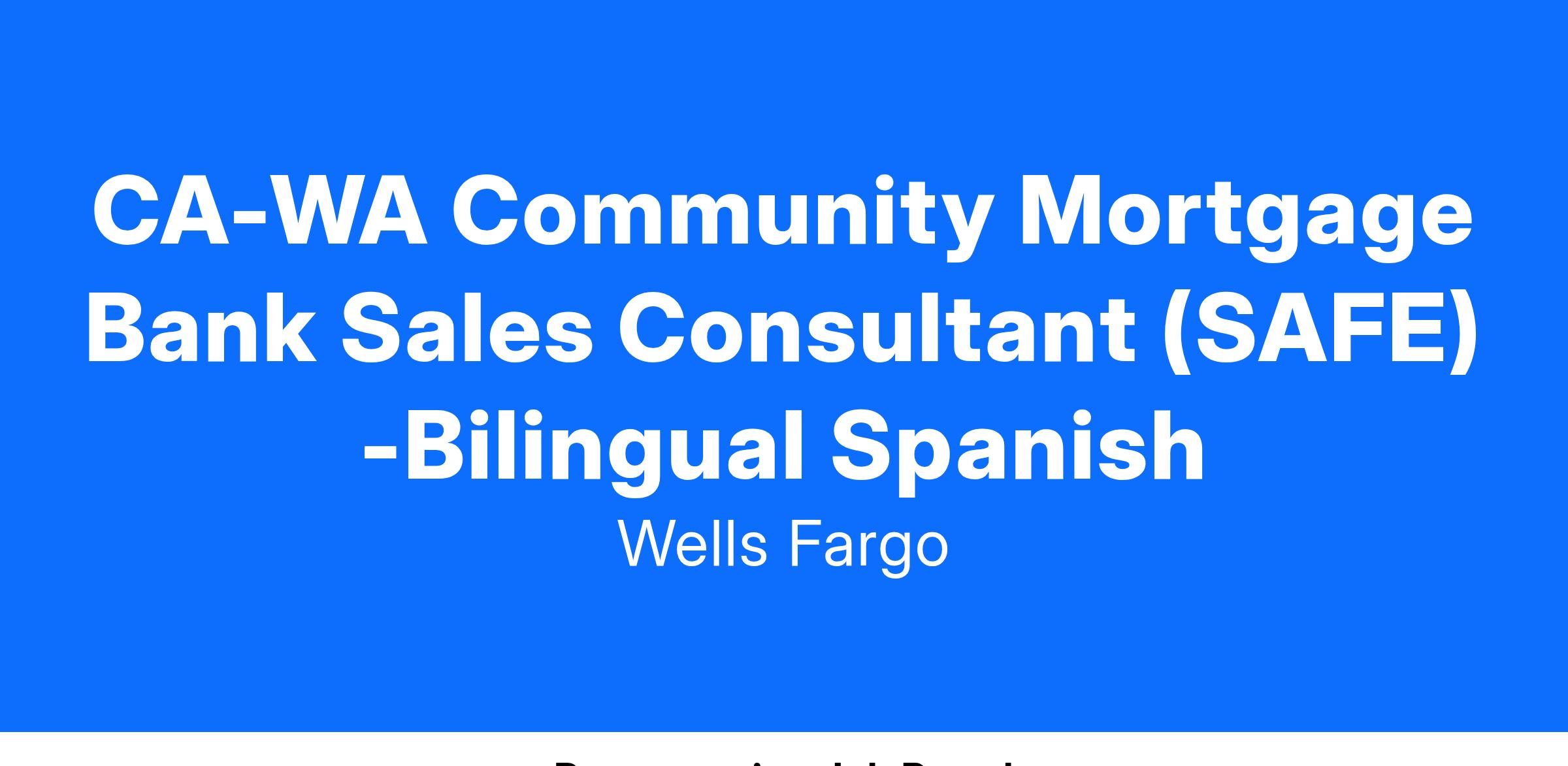 Wells Fargo is seeking a Community Mortgage Bank Sales Consultant (SAFE) in Consumer Lending as part of Home Lending. For additional information on this line of business, refer to the external Careers Site at www.wellsfargojobs.com.