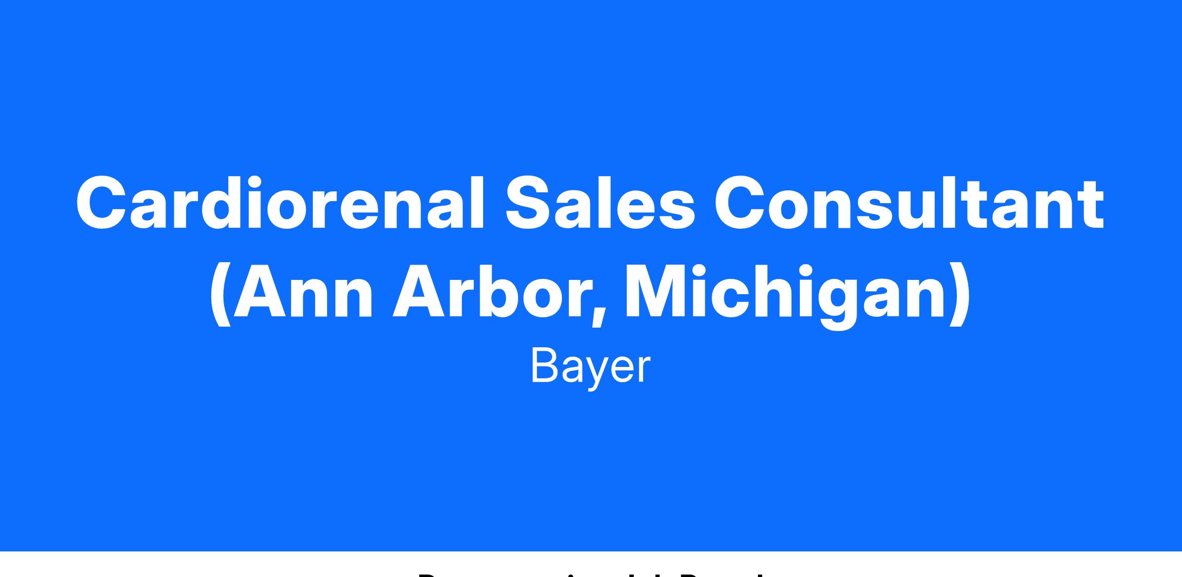 Cardiorenal Sales Consultant (Ann Arbor, Michigan)