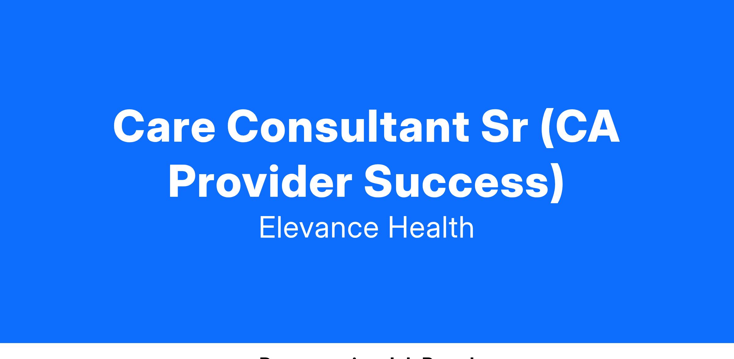 Care Consultant Sr (CA Provider Success)Job Description:
